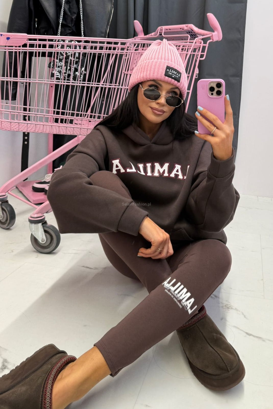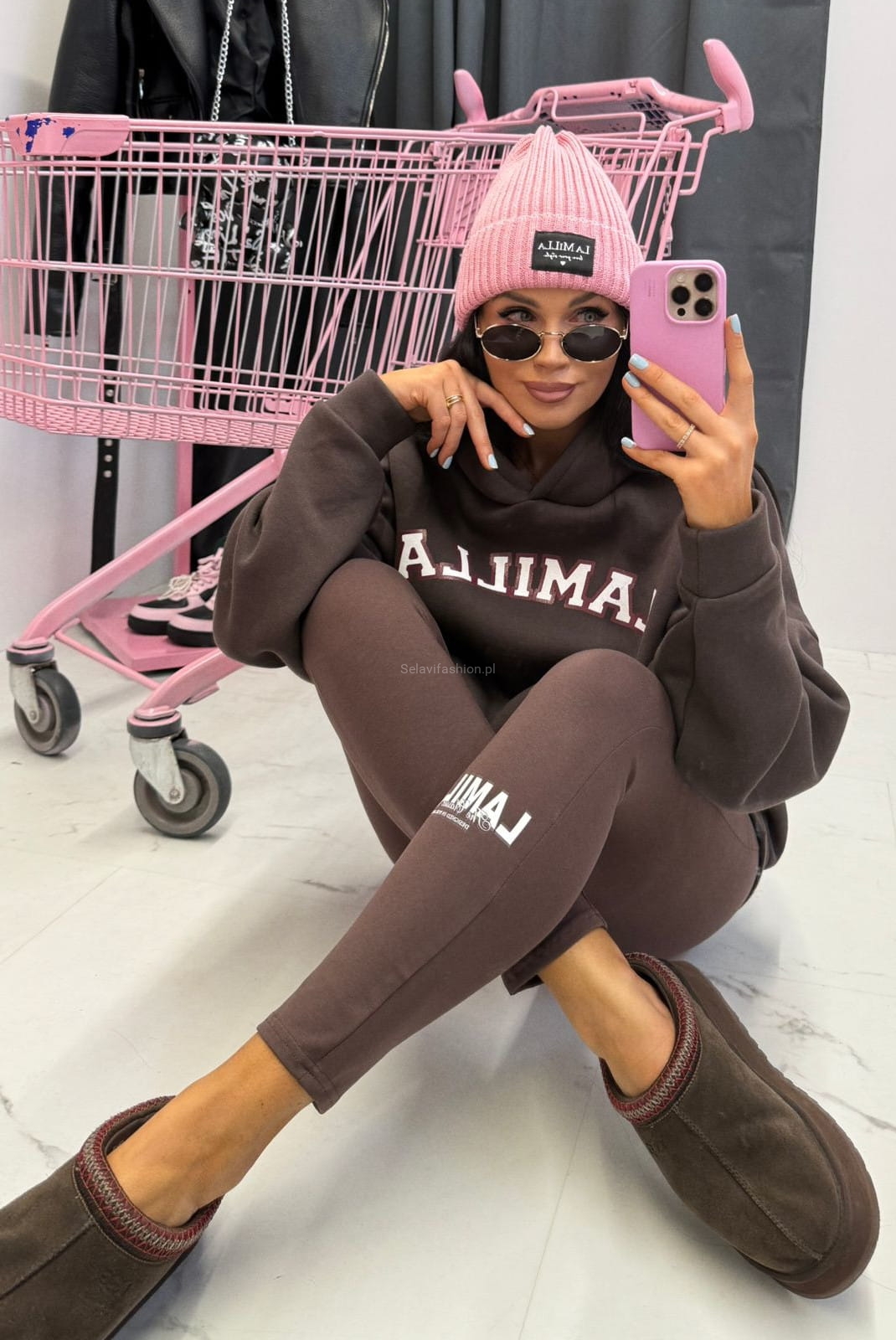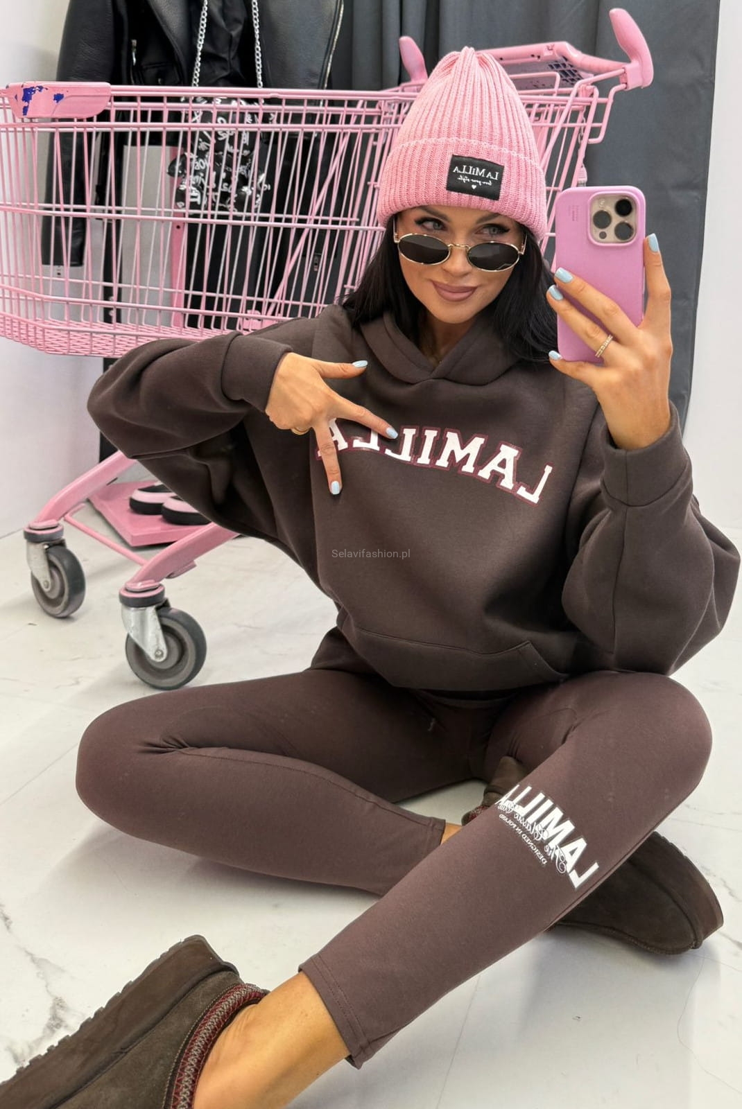 Bawełniane legginsy z logo La Milla brązowe