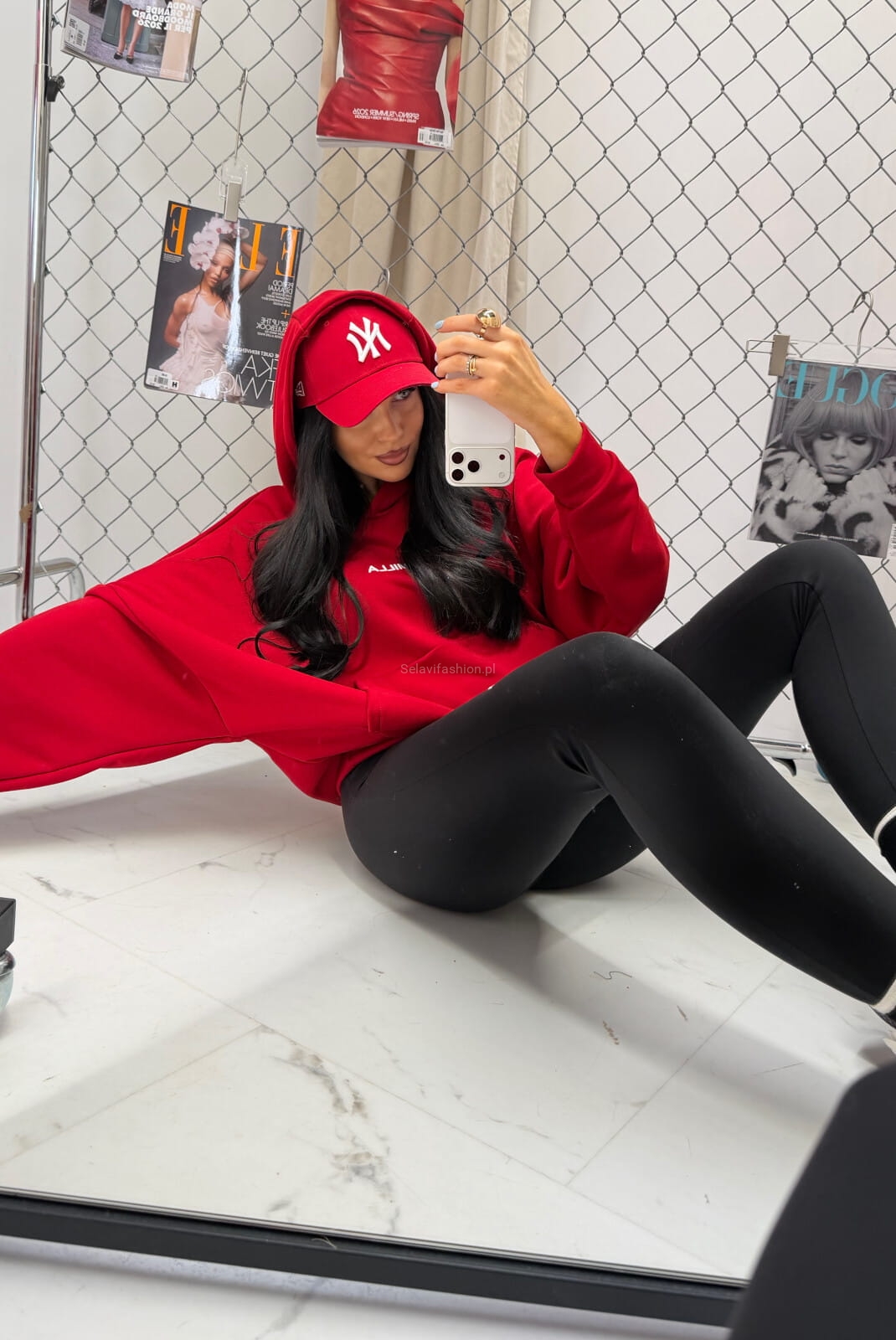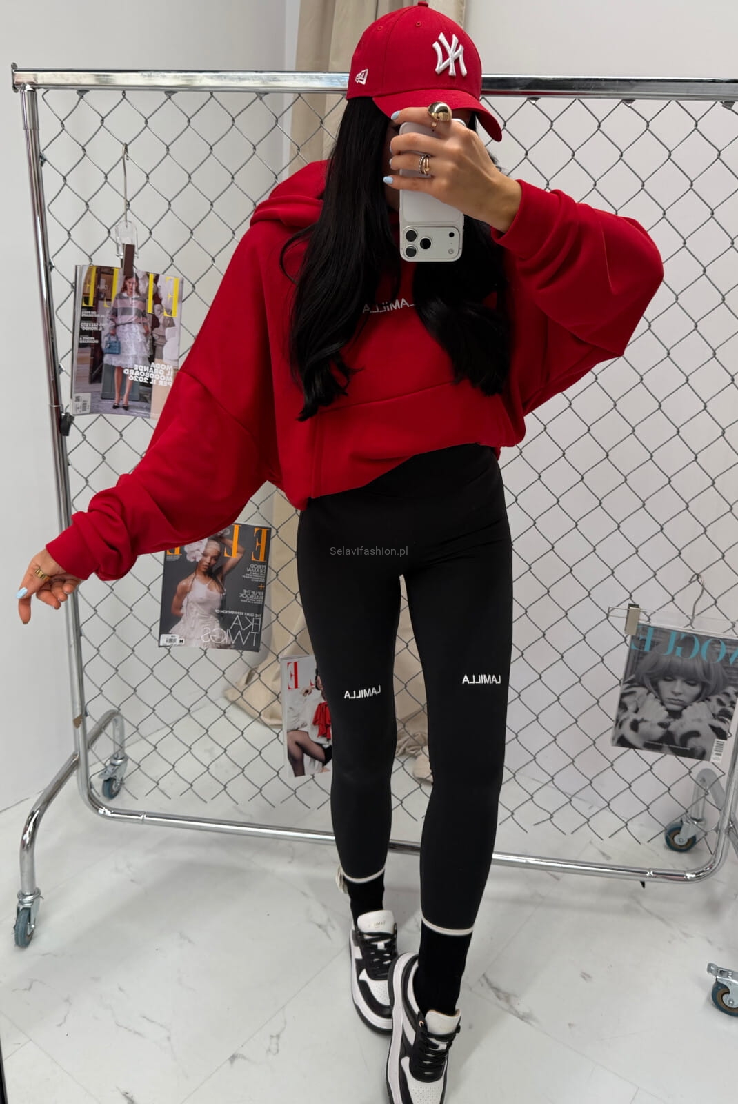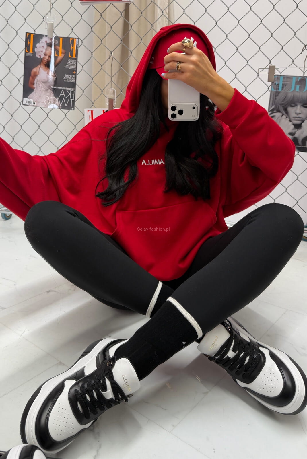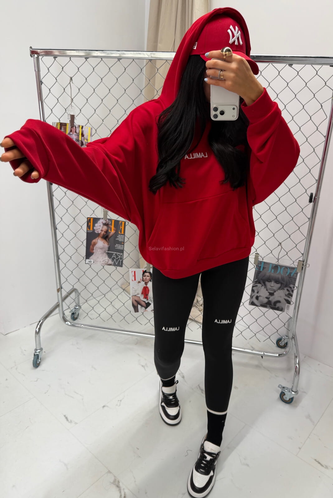 Bluza z kapturem z haftowanym logo La Milla czerwona