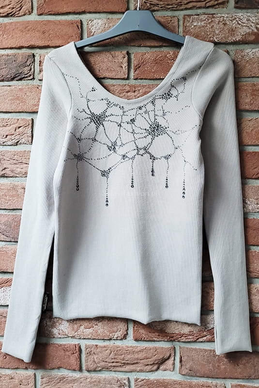 Bluzka Quincy z aplikacją i przedłużonym rękawem Minouu szara
