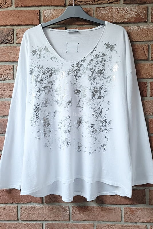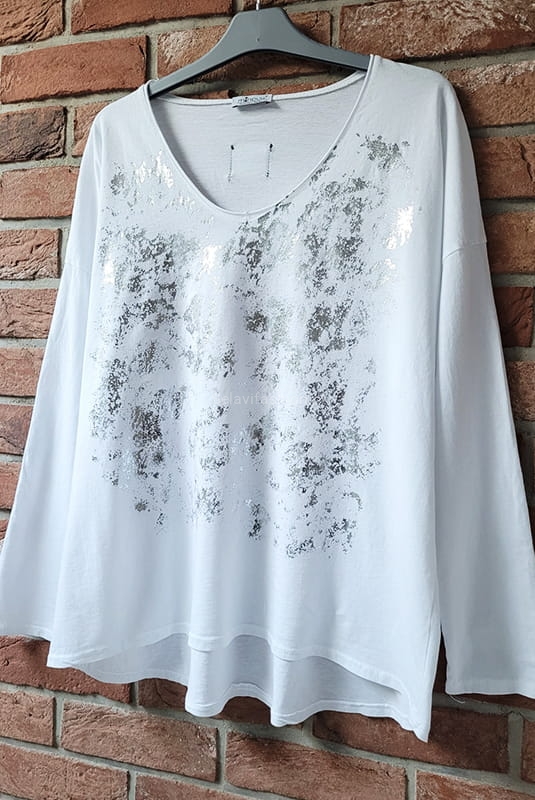 Bluzka bawełniana ze srebrzystym nadrukiem Minouu biała