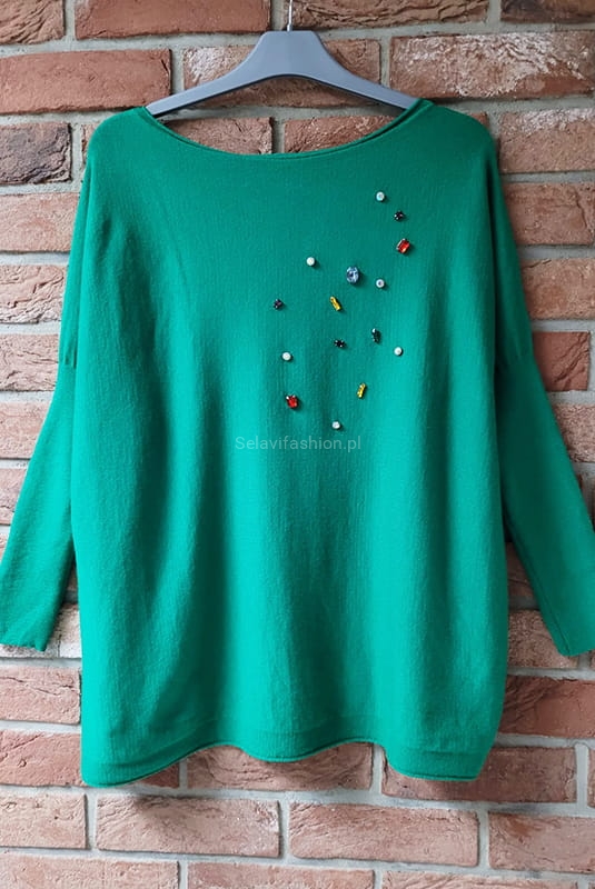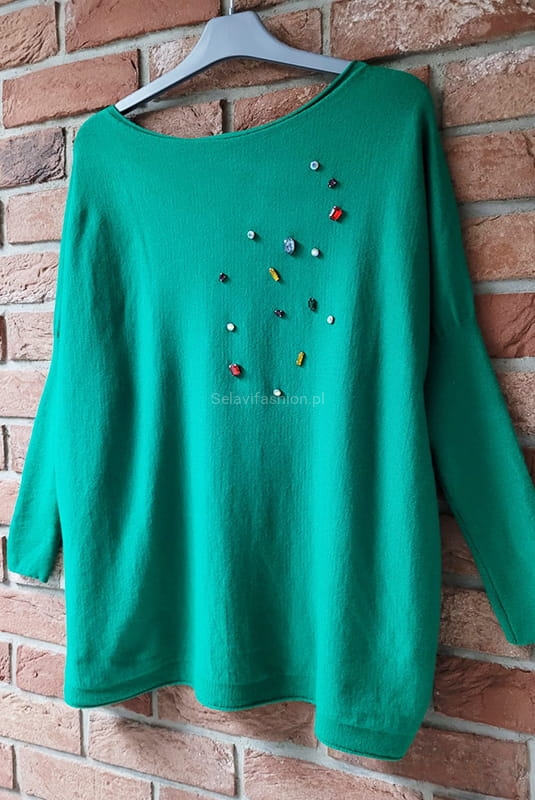 Bluzka sweter z ozdobnymi kamieniami Minouu zielony