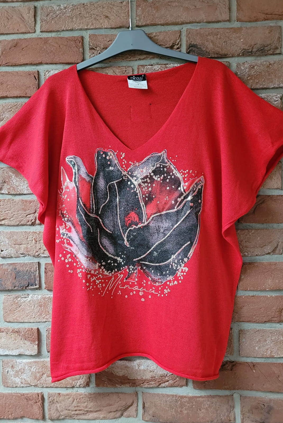 Bluzka swetrowa Tulipan z krótkim rękawem Minouu czerwona