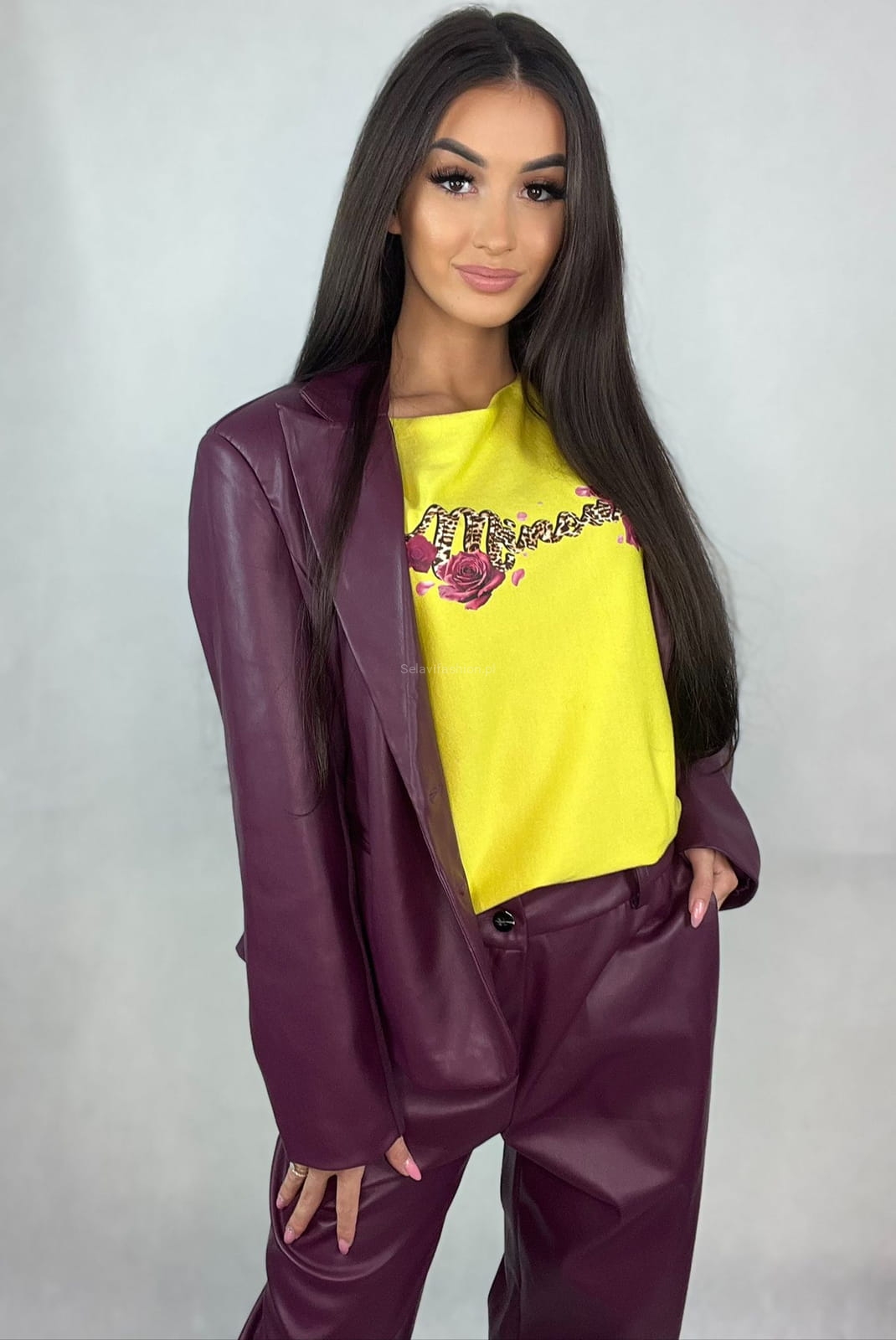 Bluzka swetrowa róże z logo Minouu żółta