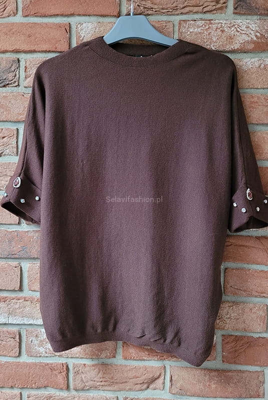 Bluzka swetrowa z ozdobnymi kamieniami na rękawach Minouu brązowy