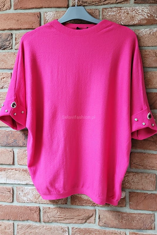 Bluzka swetrowa z ozdobnymi kamieniami na rękawach Minouu fuksja