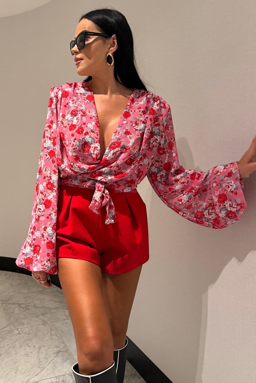 Bluzka wiązana w pasie od LaMilla uszyta z delikatnego materiału. Krótki krój i mocno bufiaste rękawy podkreślają jej hiszpański temperament.