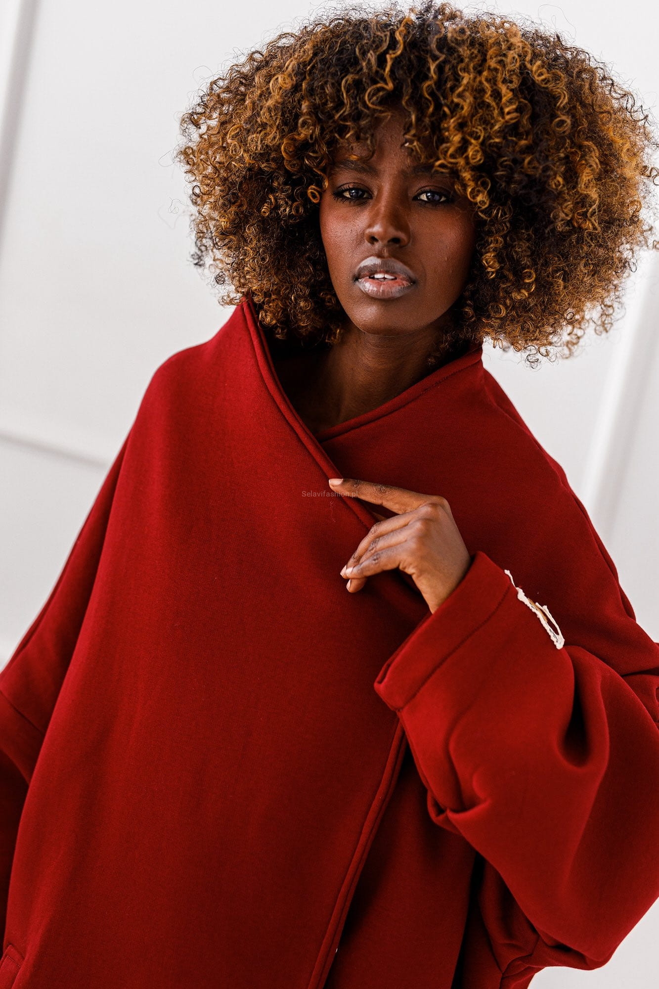 Długa bluza bawełniana od Miss City to propozycja dla kobiet ceniących komfort i oryginalny styl. Uszyta z grubej dzianiny dresowej, zapewnia ciepło i wygodę w codziennym użytkowaniu. Model wyróżnia się asymetrycznym krojem, który nadaje całości wyjątkowego charakteru. Bluza posiada fason kimono ze stójką oraz praktyczne zapięcie na zatrzaski. Wyposażona w dwie boczne kieszenie. Doskonały wybór do nowoczesnych, casualowych stylizacji.