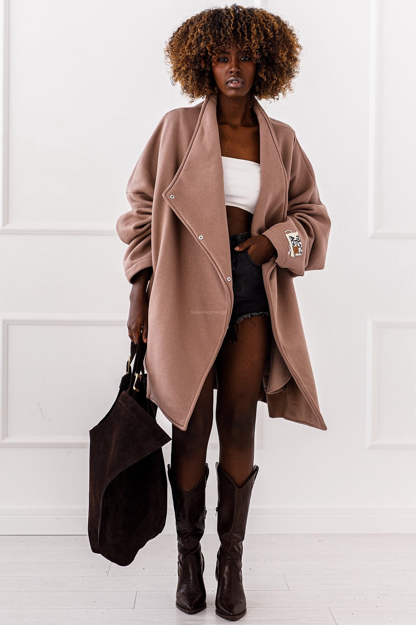 Długa bluza bawełniana od Miss City to propozycja dla kobiet ceniących komfort i oryginalny styl. Uszyta z grubej dzianiny dresowej, zapewnia ciepło i wygodę w codziennym użytkowaniu. Model wyróżnia się asymetrycznym krojem, który nadaje całości wyjątkowego charakteru. Bluza posiada fason kimono ze stójką oraz praktyczne zapięcie na zatrzaski. Wyposażona w dwie boczne kieszenie. Doskonały wybór do nowoczesnych, casualowych stylizacji.