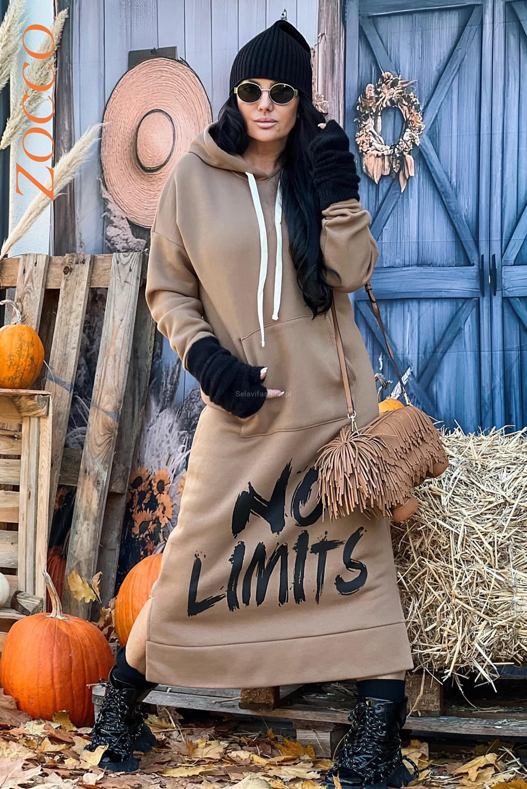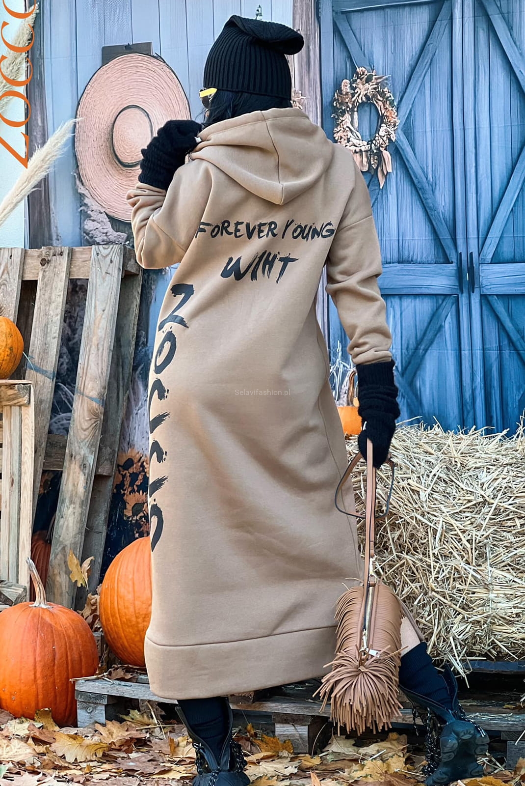 Długa bluza sukienka w napisy Zocco beżowy