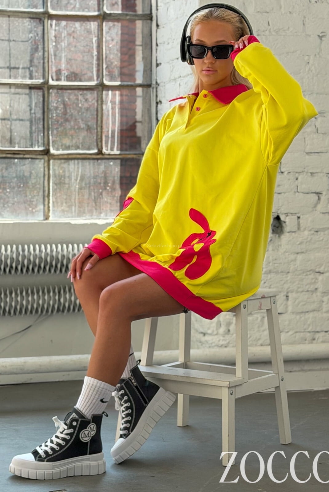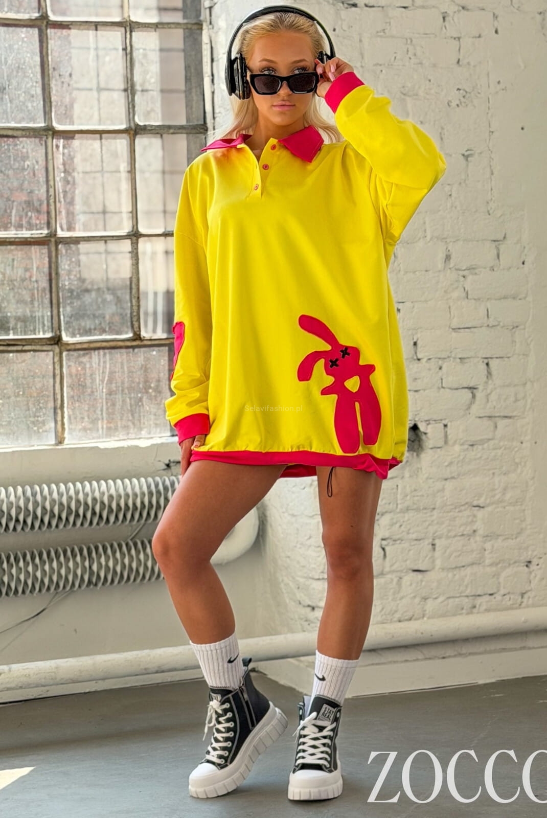 Długa bluza z kolorowymi akcentami z naszywką Zocco żółta