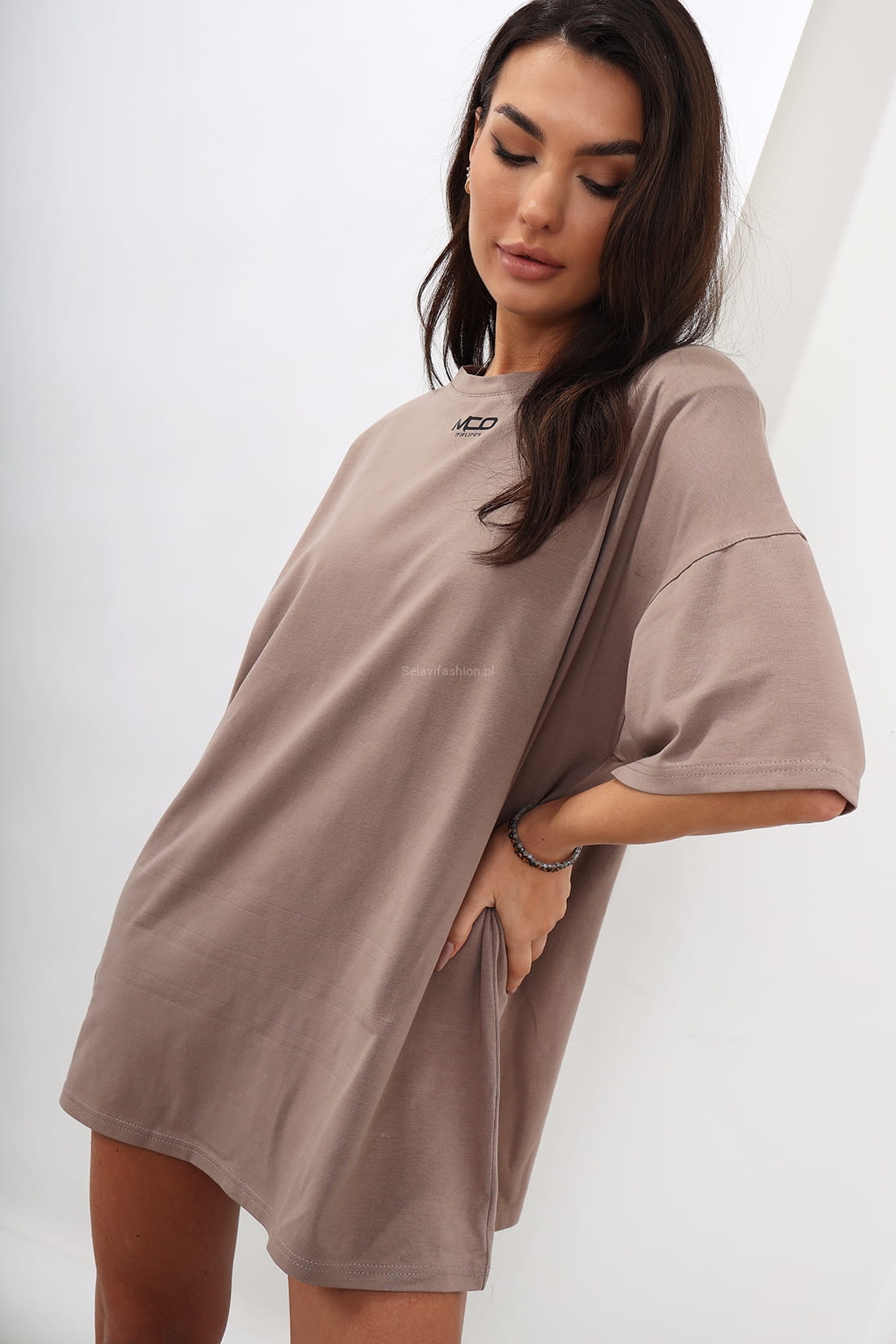 Długa bluzka koszulka t-shirt MCO Miss City Official beżowa