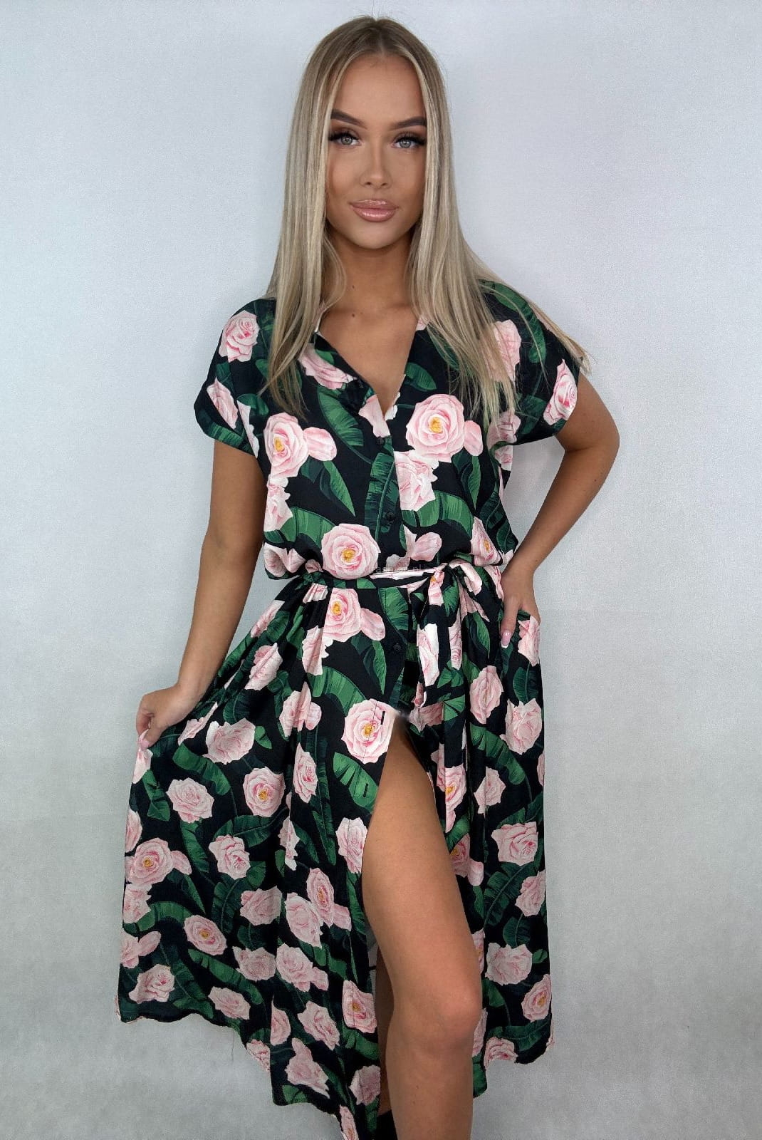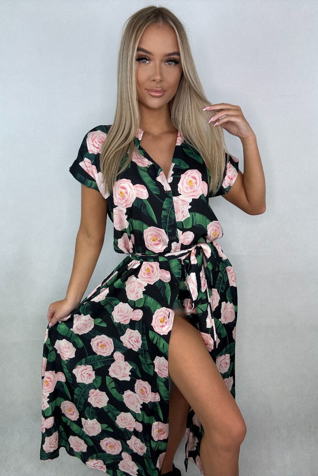 Długa sukienka Minouu zapinana na guziki.