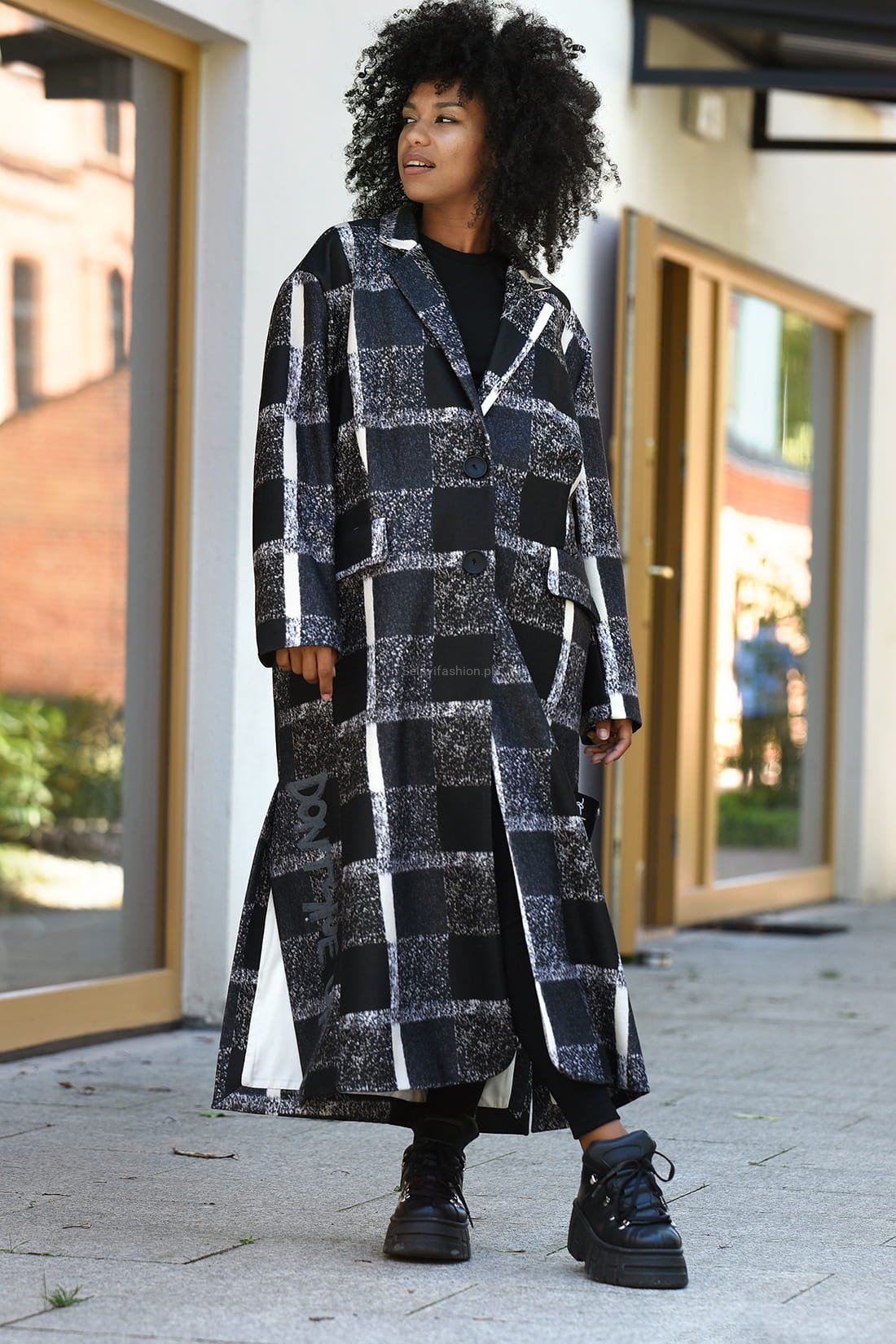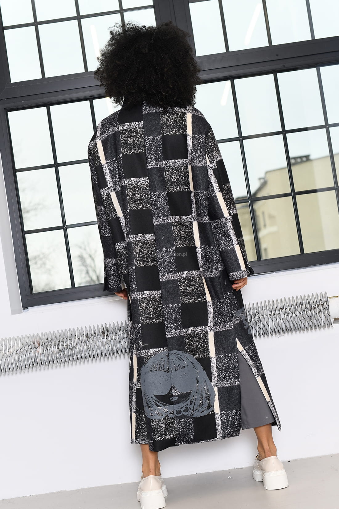 Długi, damski płaszcz Lumi od Miss City Official to stylowy i wyjątkowy element garderoby o luźnym kroju. Wykonany z miękkiego materiału typu flausz, daje poczucie komfortu i elegancji. Jego najbardziej charakterystycznym elementem jest ciekawy i niezwykły wzór, który wyróżnia go spośród innych płaszczy dostępnych na rynku, stanowiąc unikalny element kolekcji Miss City Official. Płaszcz wyposażony jest w dwie praktyczne kieszenie, dodając funkcjonalności do jego atrakcyjnego designu. Wnętrze płaszcza zostało starannie wykończone poliestrową podszewką, co sprawia, że noszenie go jest nie tylko stylowe, ale także komfortowe. To doskonała propozycja dla kobiet ceniących modę i oryginalność.