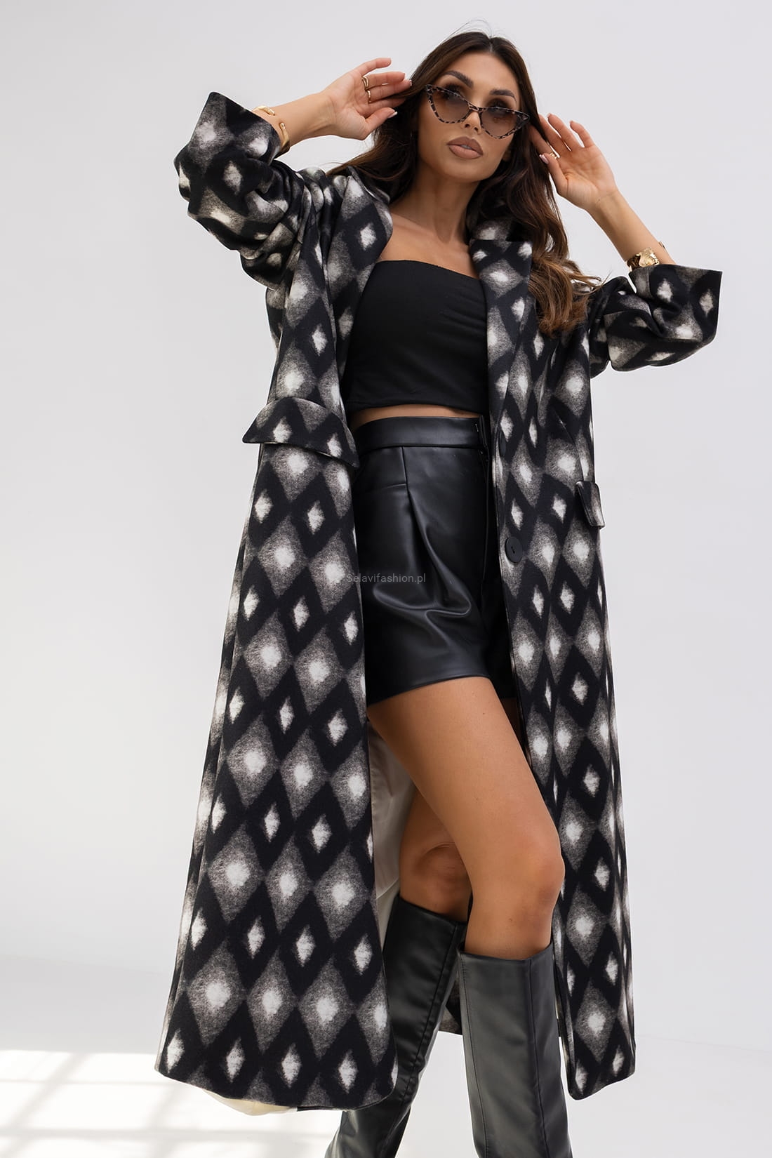 Długi płaszcz Lumi romby Miss City Official czarny