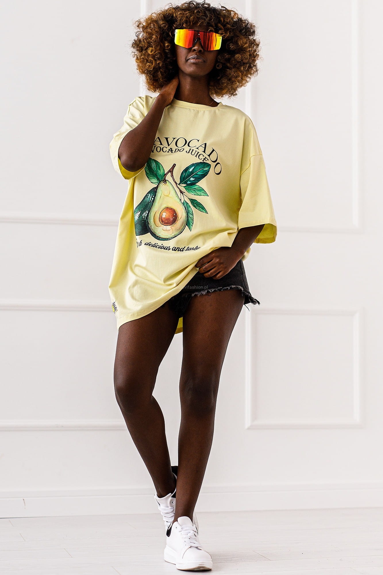 Długi t-shirt bluzka Avocado Postcard Miss City żółty