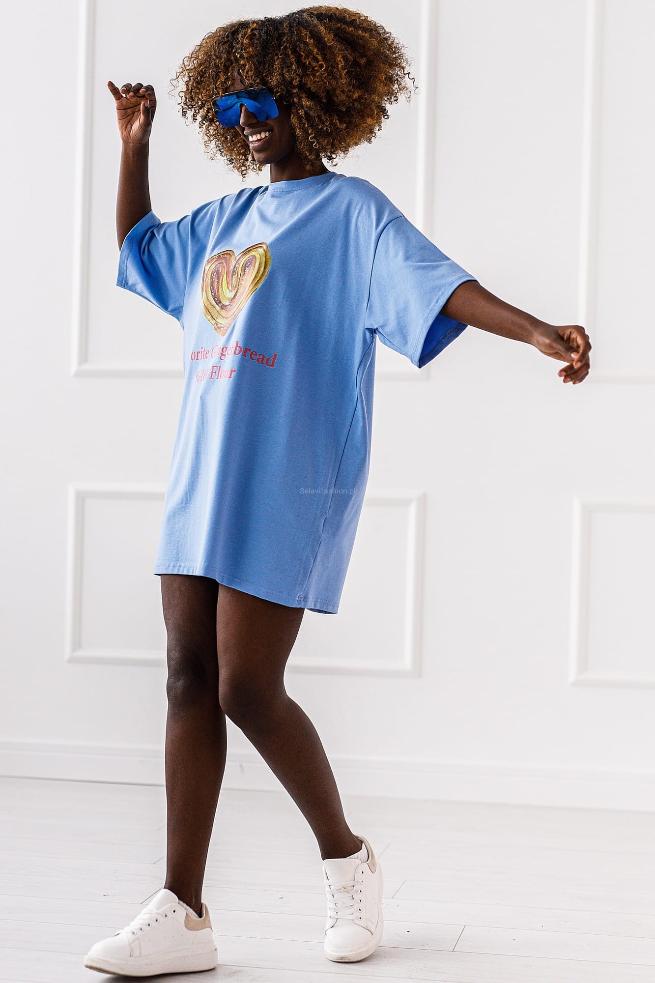 Długi t-shirt bluzka Gingerbread Miss City niebieski