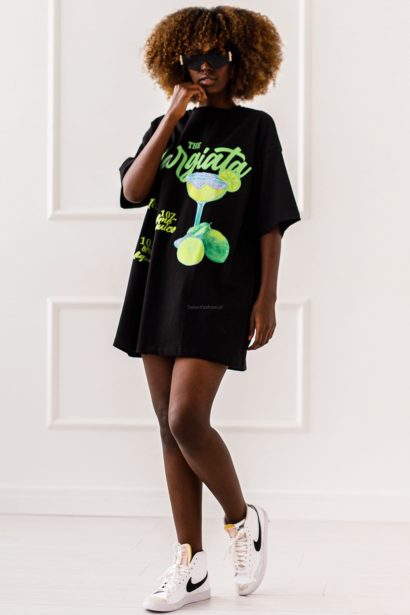 Oversize’owy T-shirt z wyrazistą grafiką. Luźny krój zapewnia komfort i swobodę noszenia, a miękka bawełna sprawdzi się na co dzień. Duży print nadaje całości modowego charakteru i przyciąga uwagę.