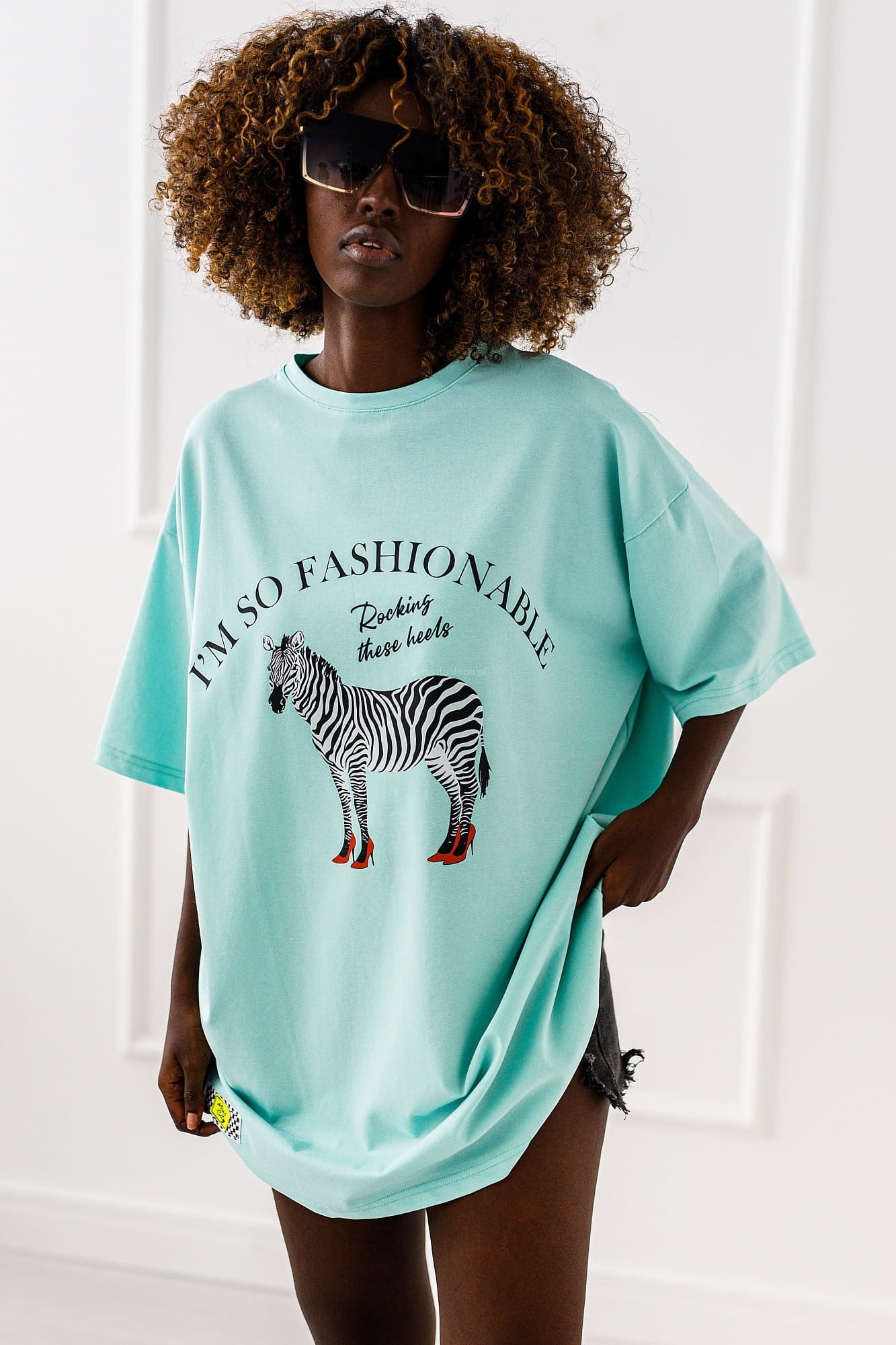 t- shirt z motywem zebry.Długi t-shirt bluzka Safari Miss City