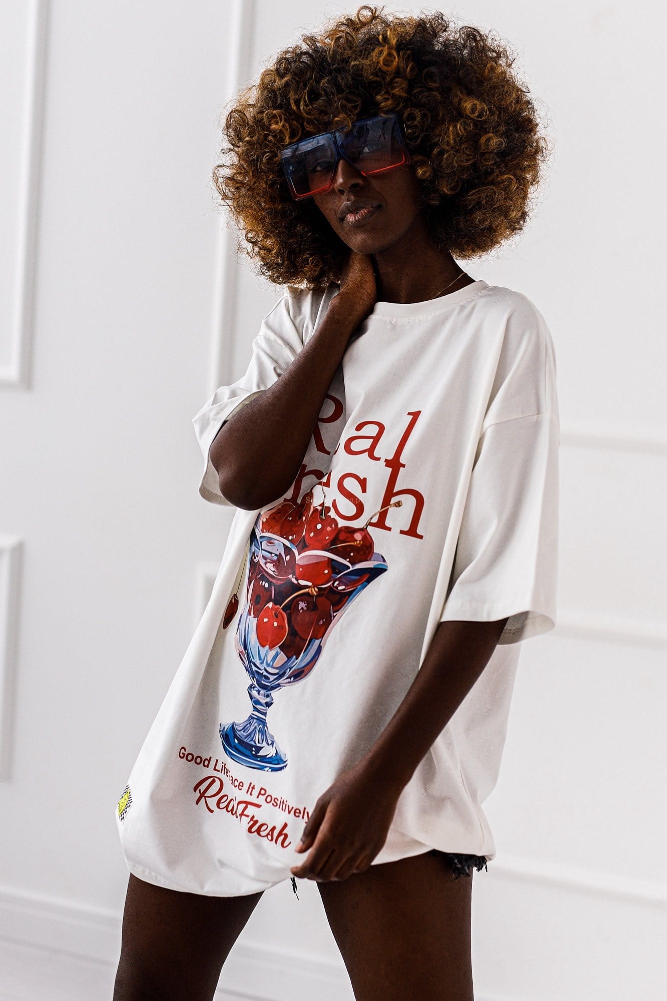 Długi t-shirt bluzka Wiśnie Miss City biała