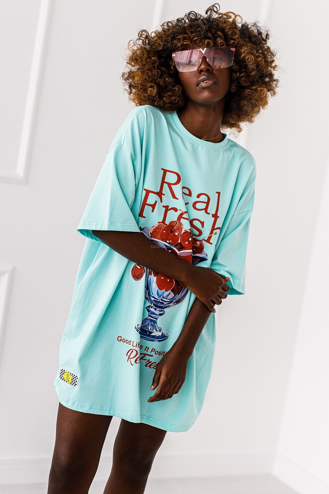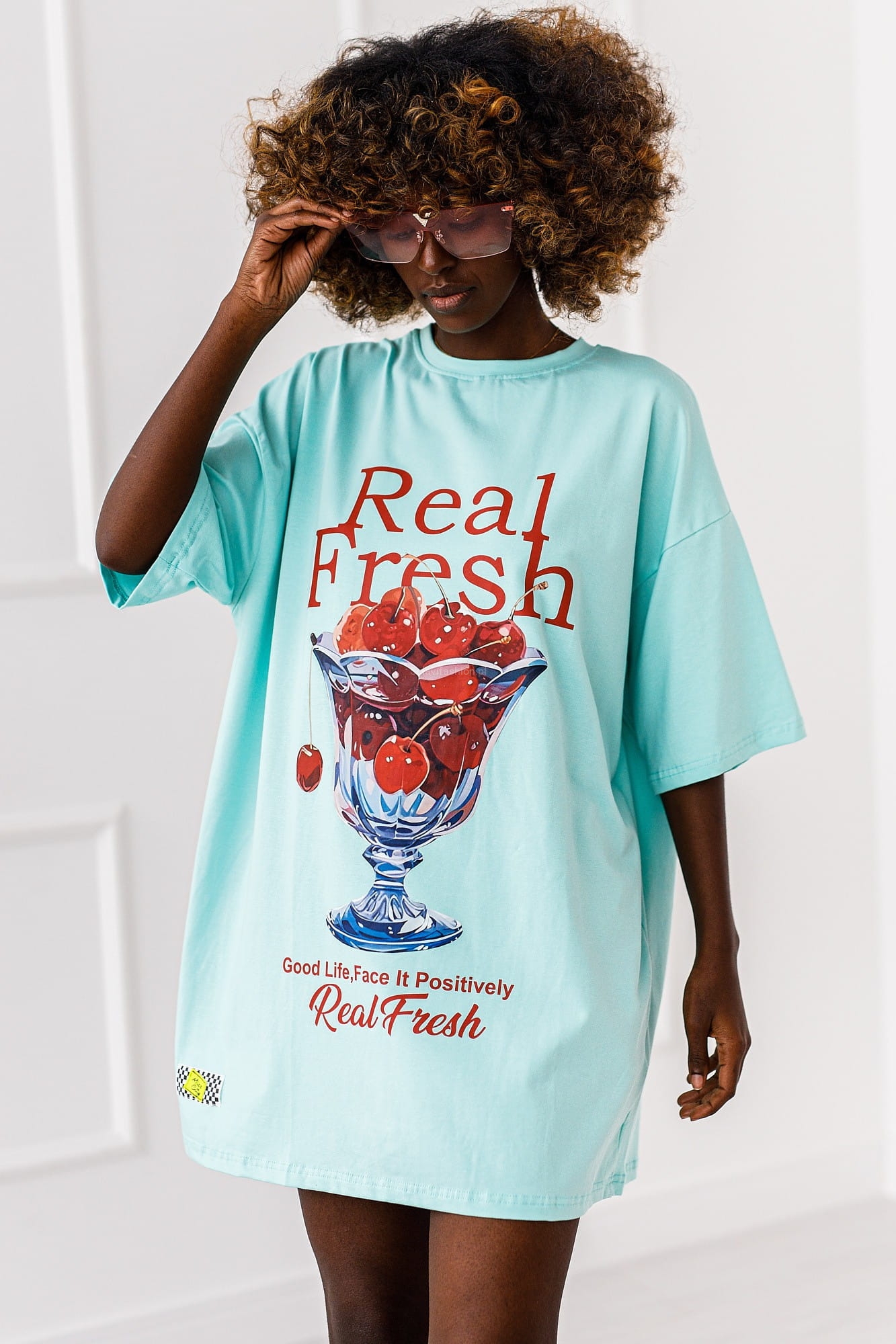 Długi t-shirt bluzka Wiśnie Miss City niebieska