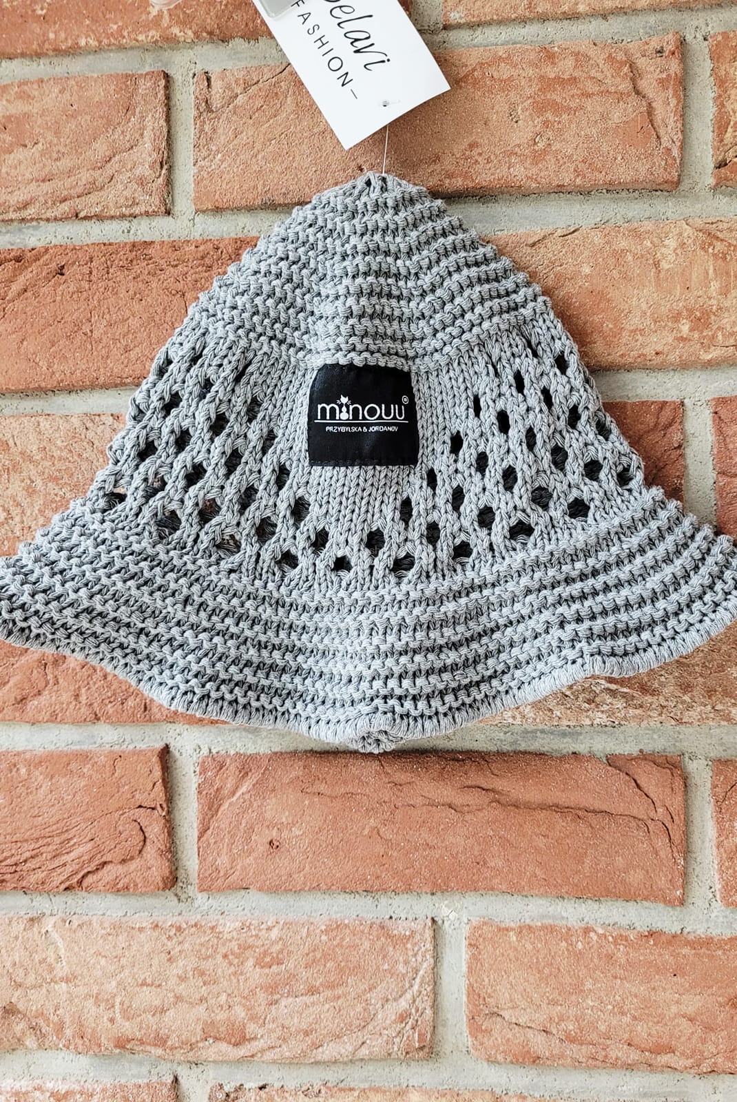 Dzianinowa ażurowa czapka kapelusz Minouu szara