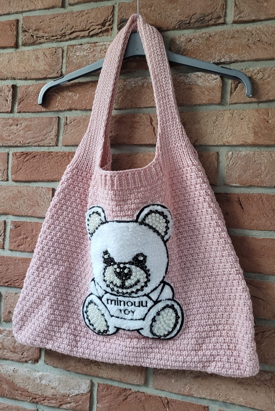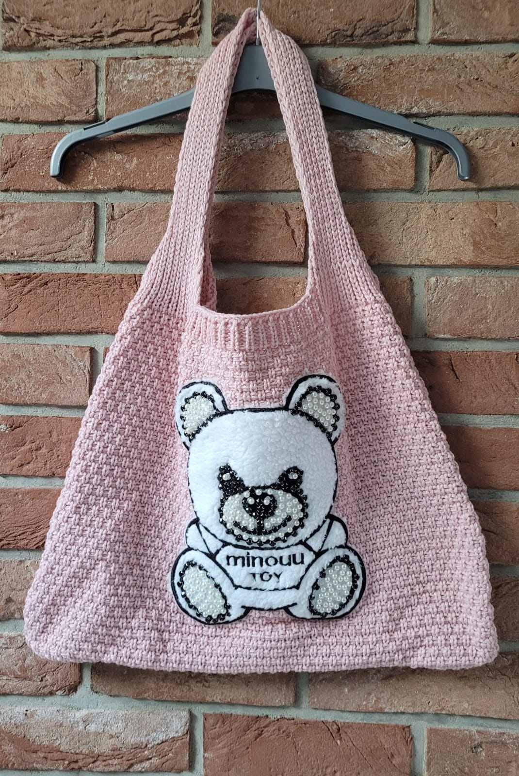 Dzianinowa torba miś Minouu pudrowy róż