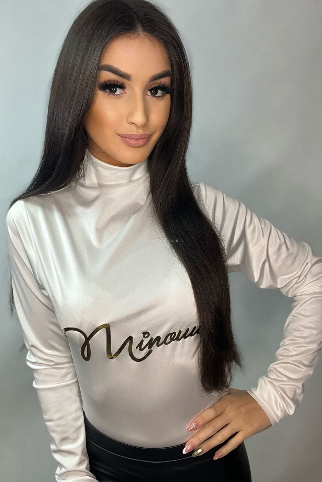 Golf bluzka Elastan z firmowym napisem Minouu ecru