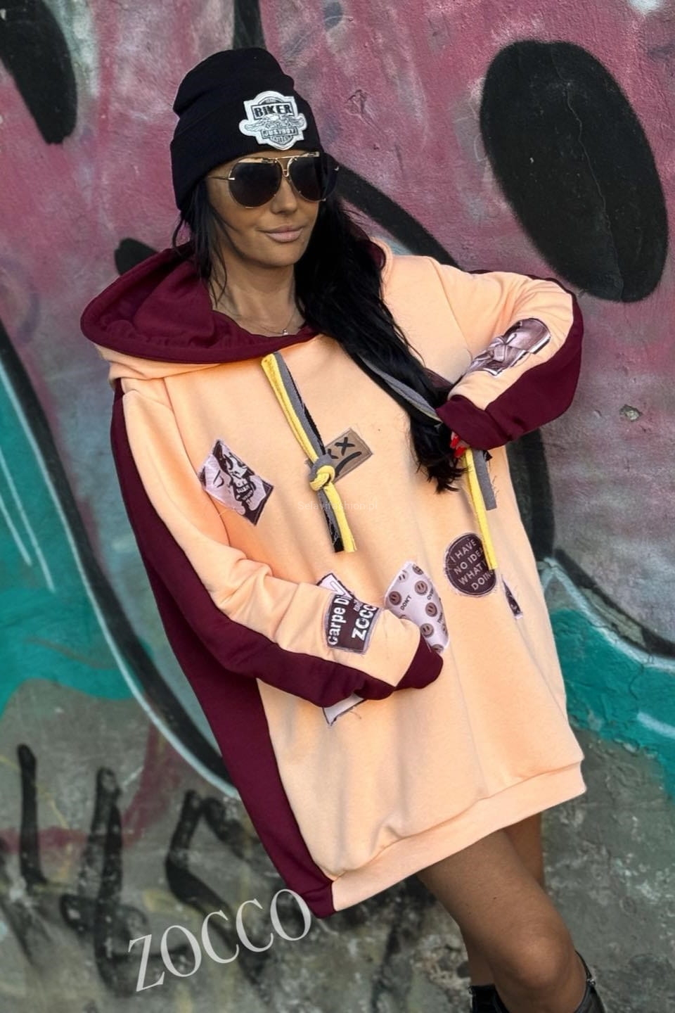 Gruba bluza z dwoma kapturami i obszernym krojem Zocco brzoskwiniowo bordowa