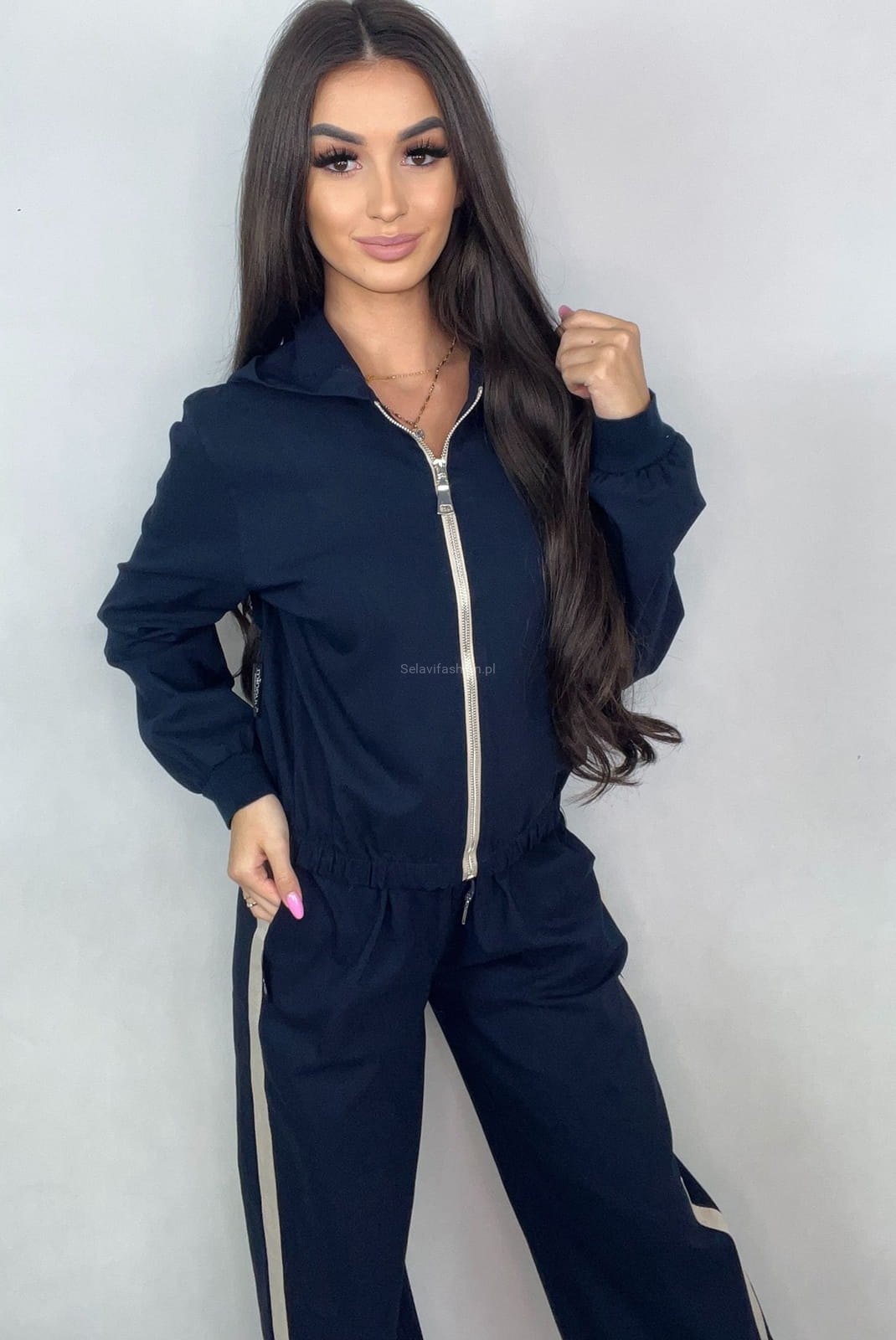 Komplet bluza i spodnie z prostą nogawką Minouu granatowy