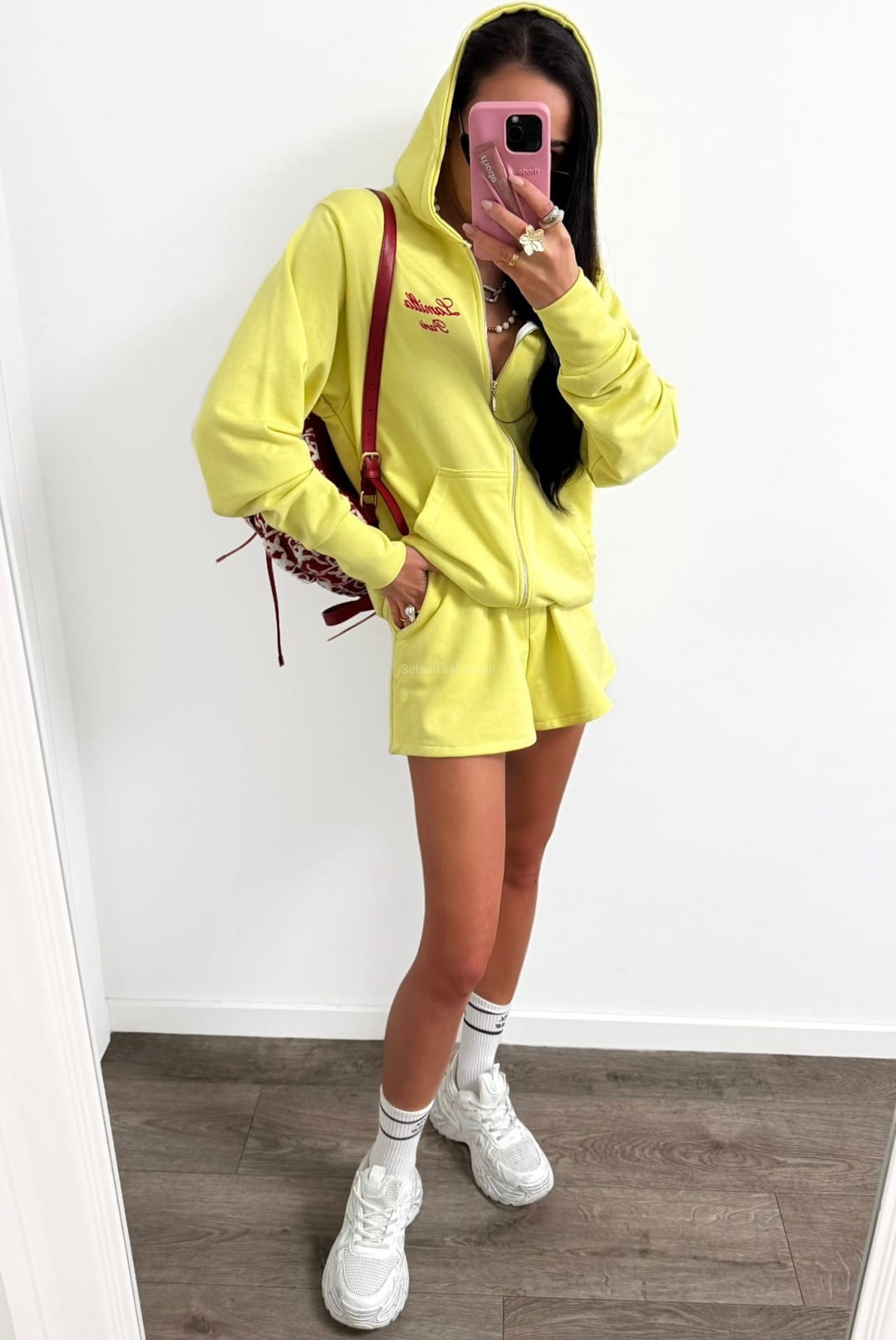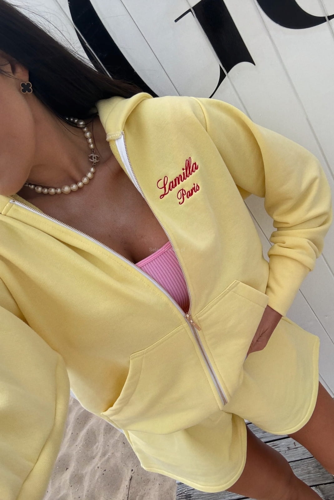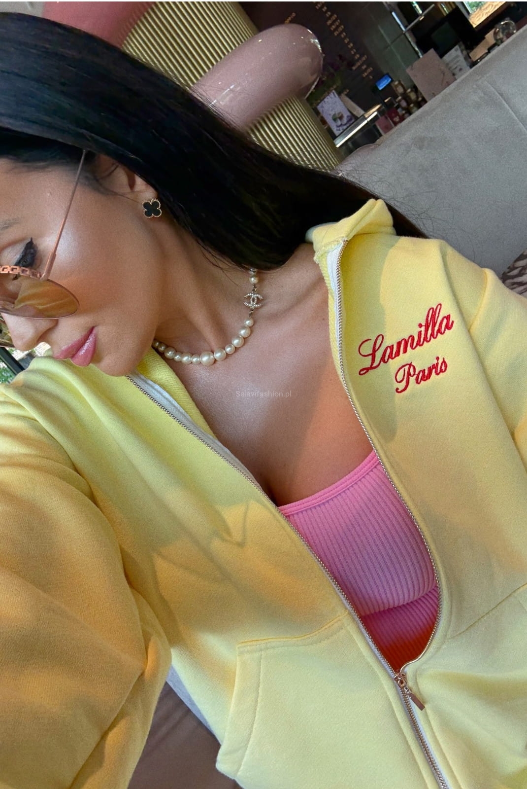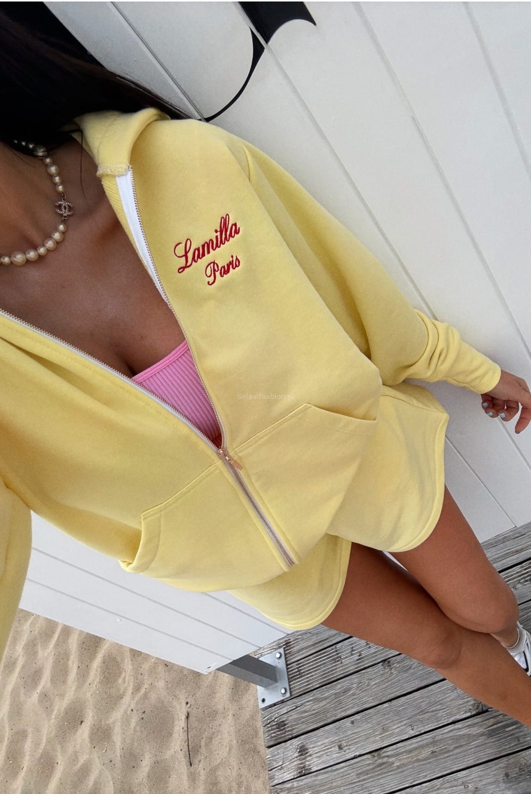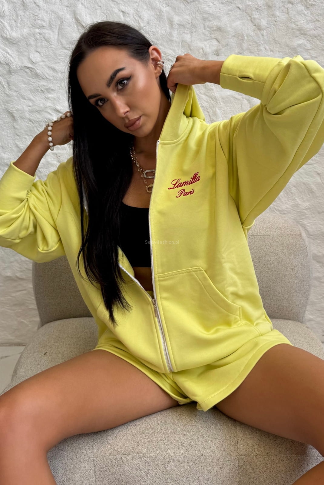 Komplet bluza na zamek i spodenki z haftowanym logo La Milla żółty