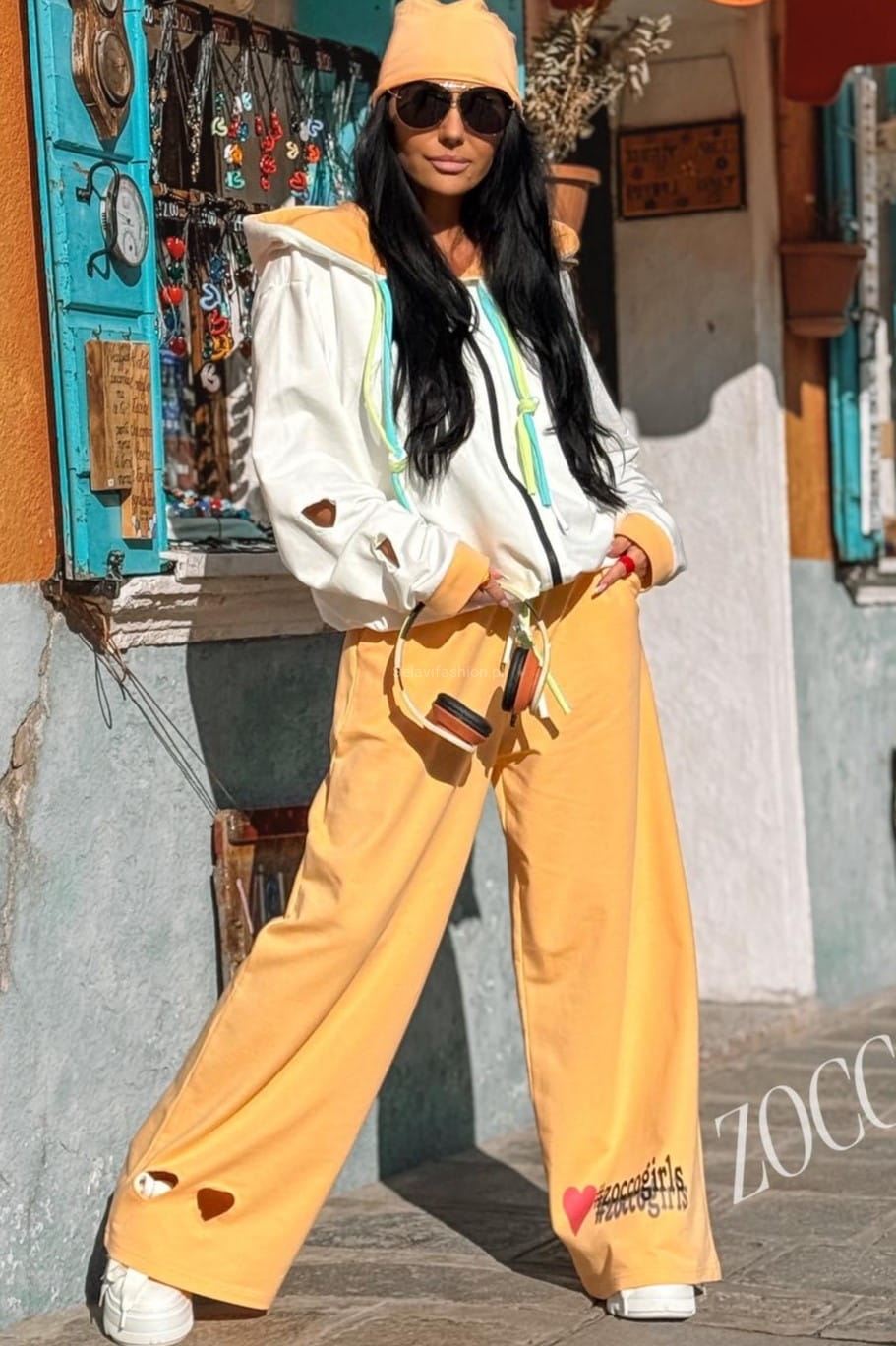 Komplet bluza na zamek i spodnie Serduszko Zocco pomarańczowy