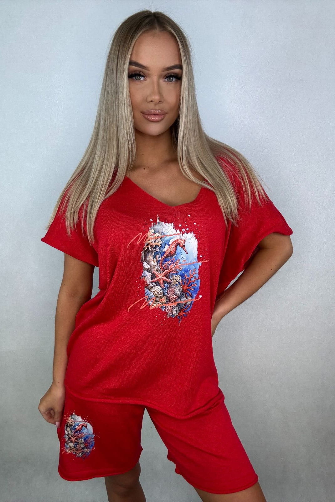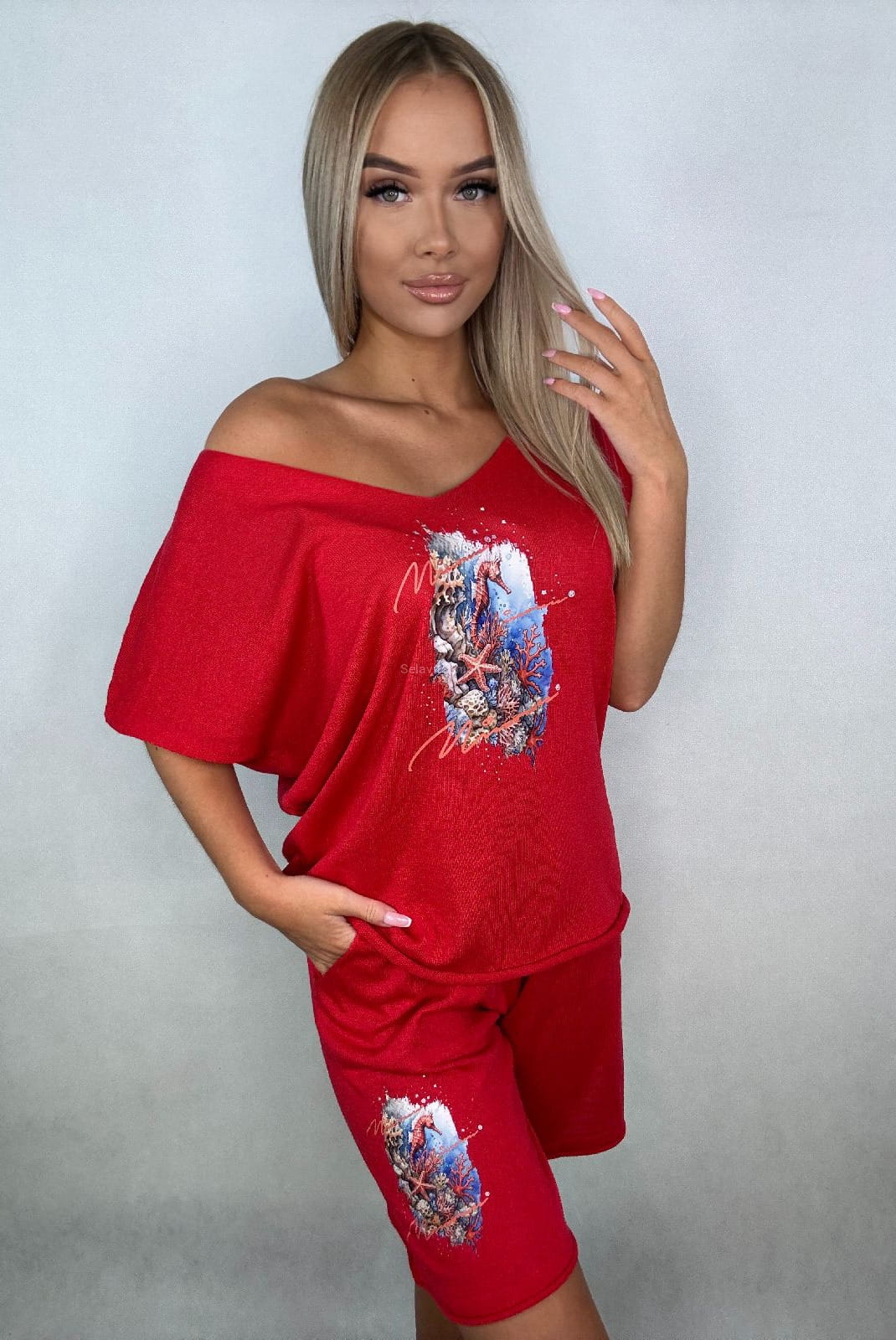 Komplet bluzka i spodenki Oceaniczna Głębia Minouu czerwony