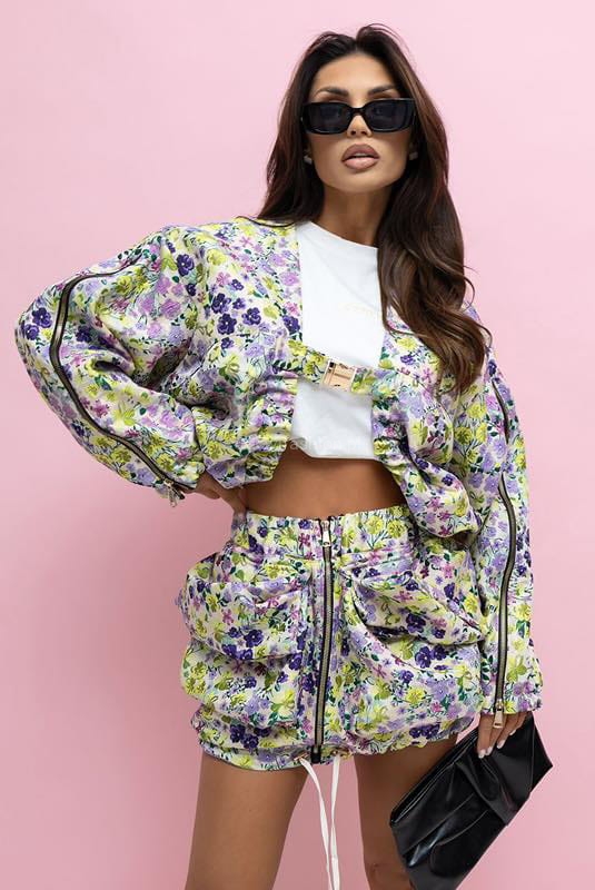 Komplet kurtka SONA i spódniczko spodenki w kwiaty Lavestino liliowy