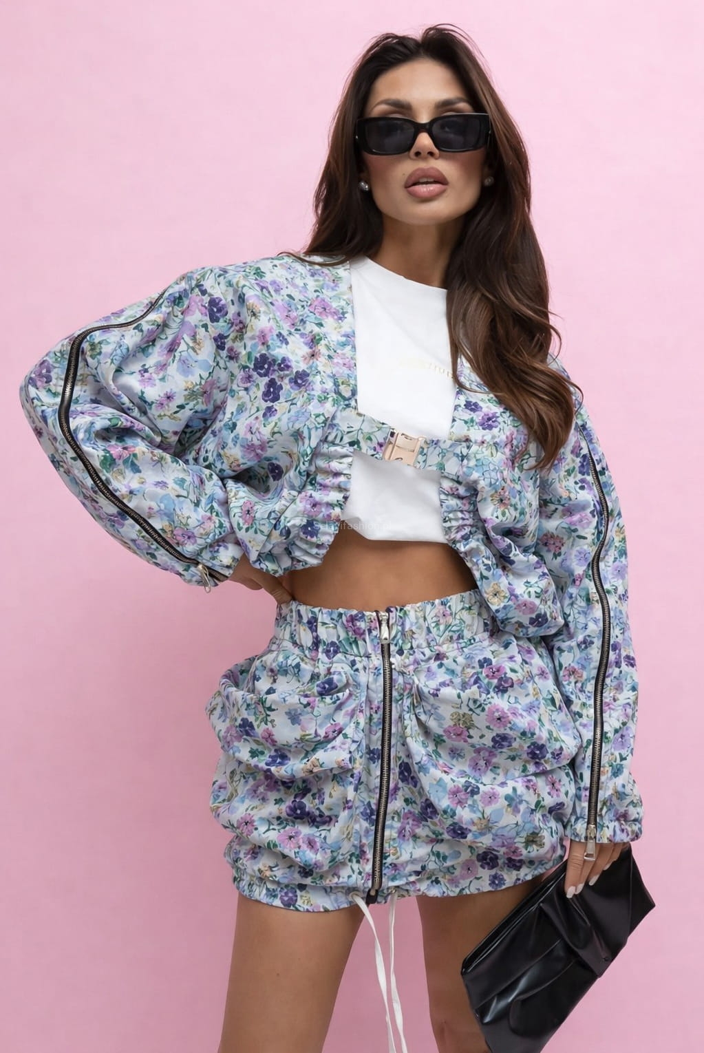 Komplet kurtka SONA i spódniczko spodenki w kwiaty Lavestino niebieski