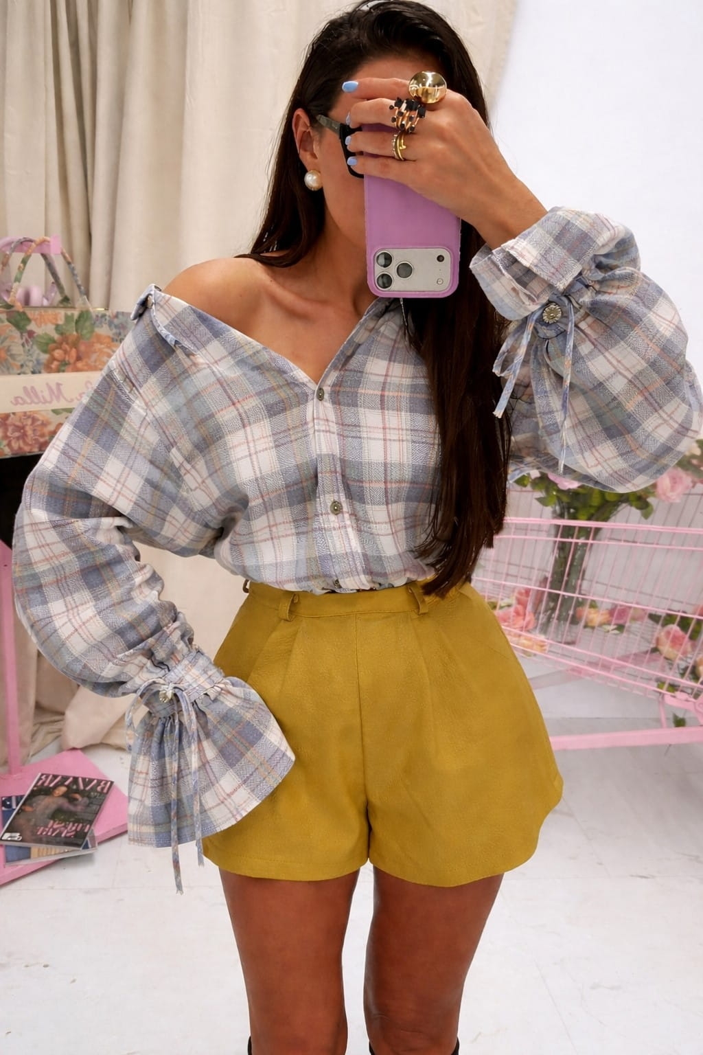 Klasyczna bawełniana koszula w kratę od La Milla zapinana na guziki, z szerokimi, bufiastymi mankietami.
