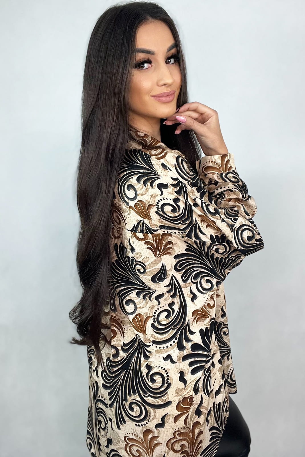 Koszula bluzka w orientalny wzór Minouu beżowa
