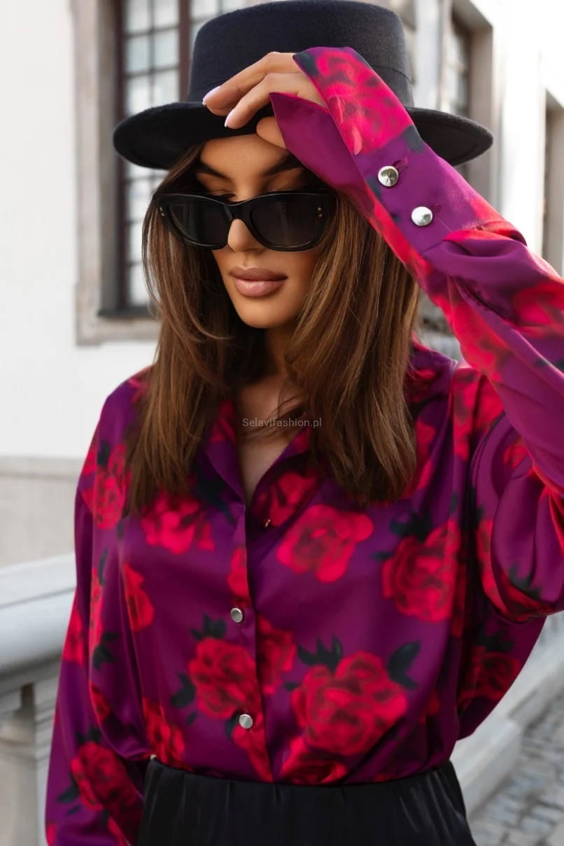 Koszula satynowa Maddie w kwiaty LaBalancia bordowa
