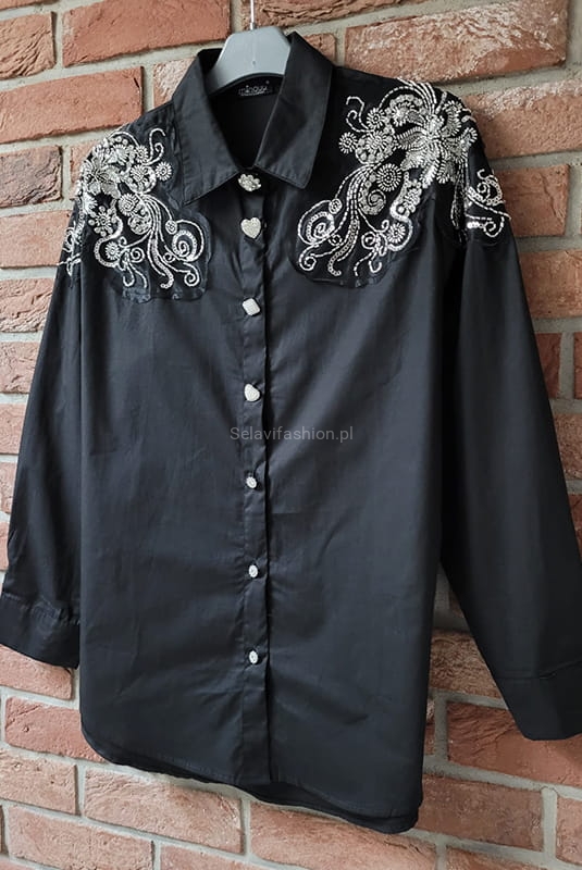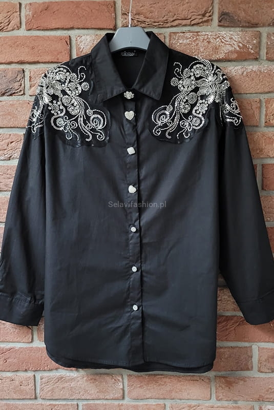 Koszula z aplikacją z koralików Minouu czarna
