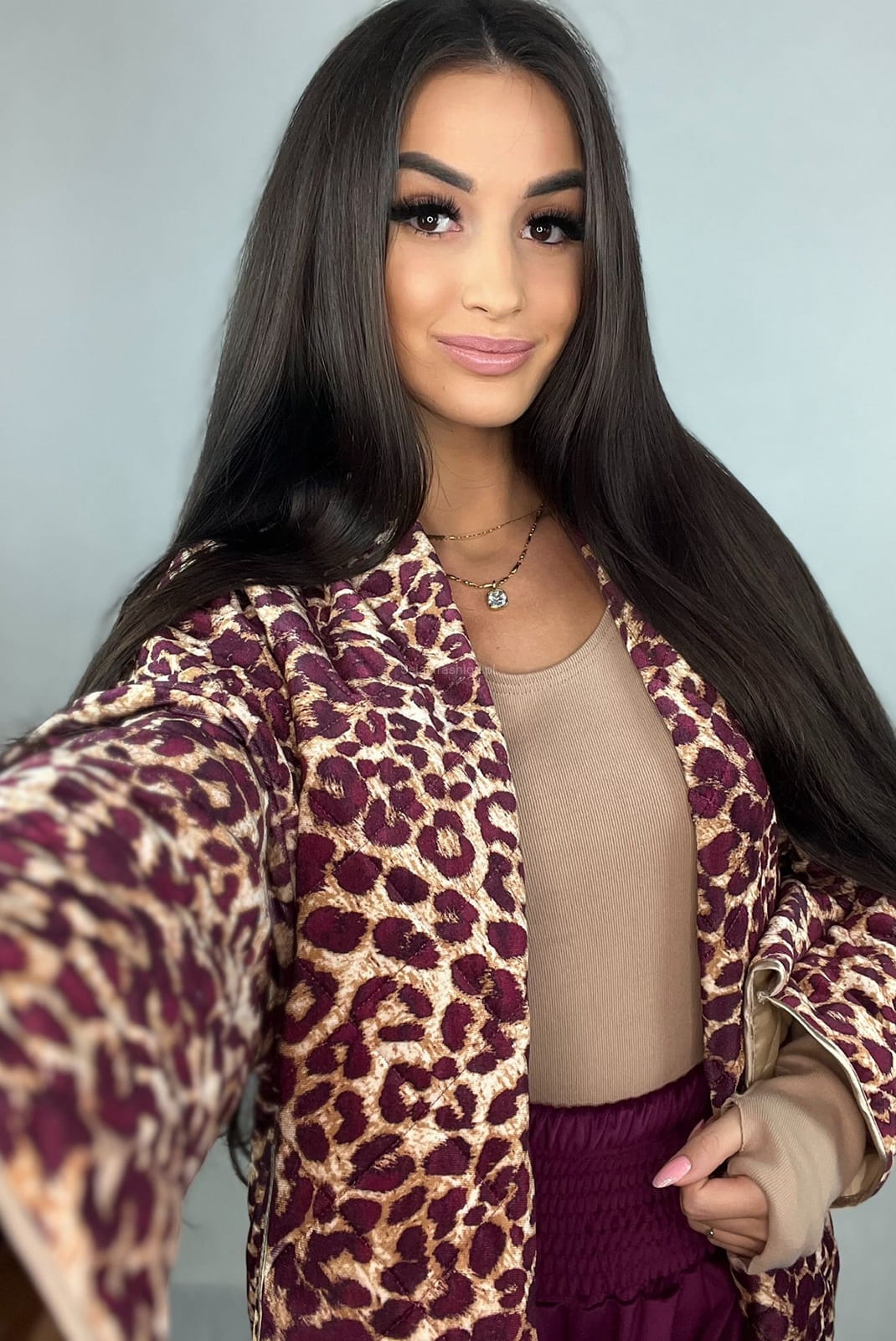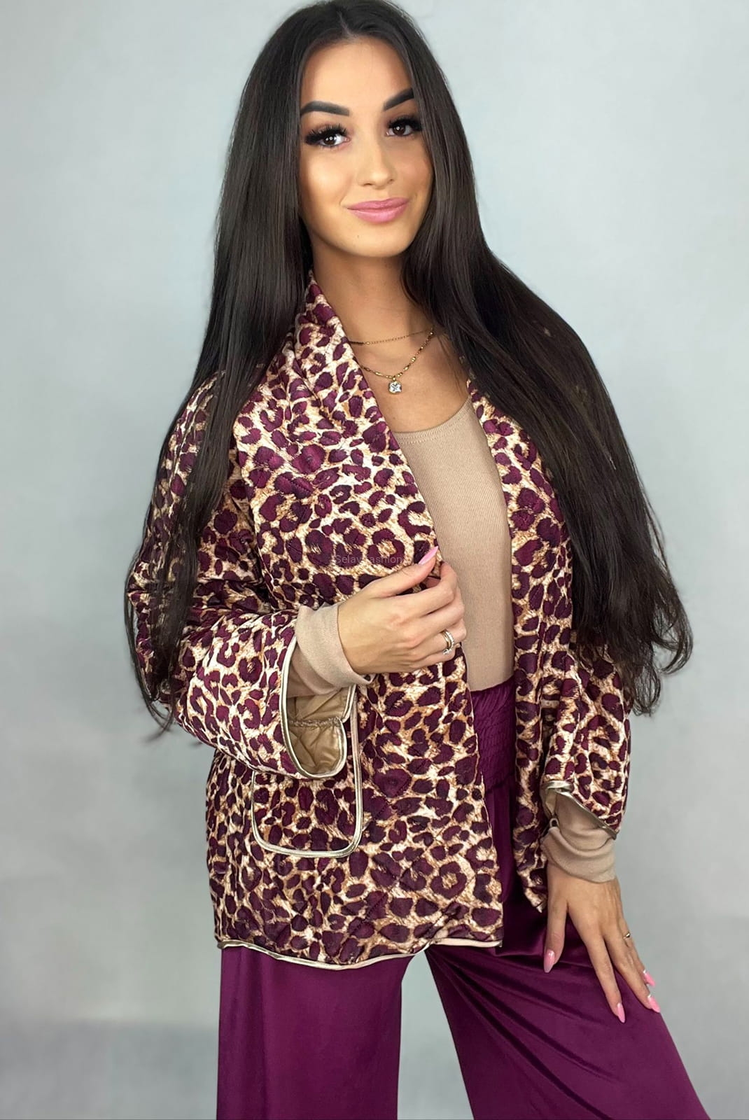 Krótka kurtka katana welurowa Panterka Minouu bordowa