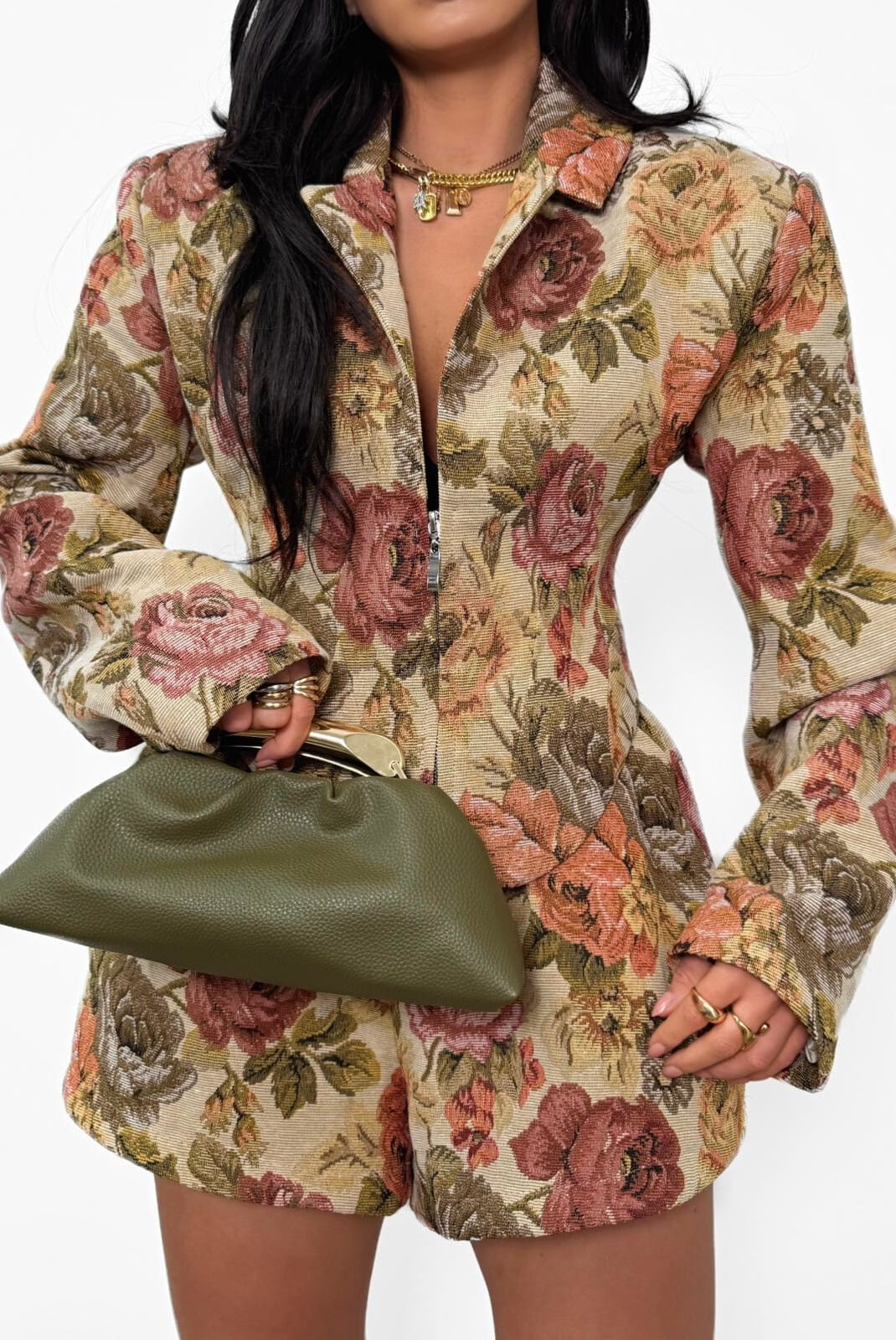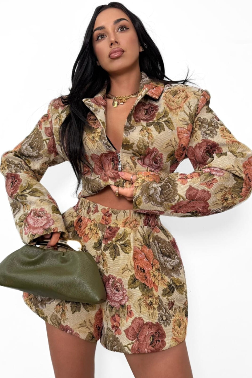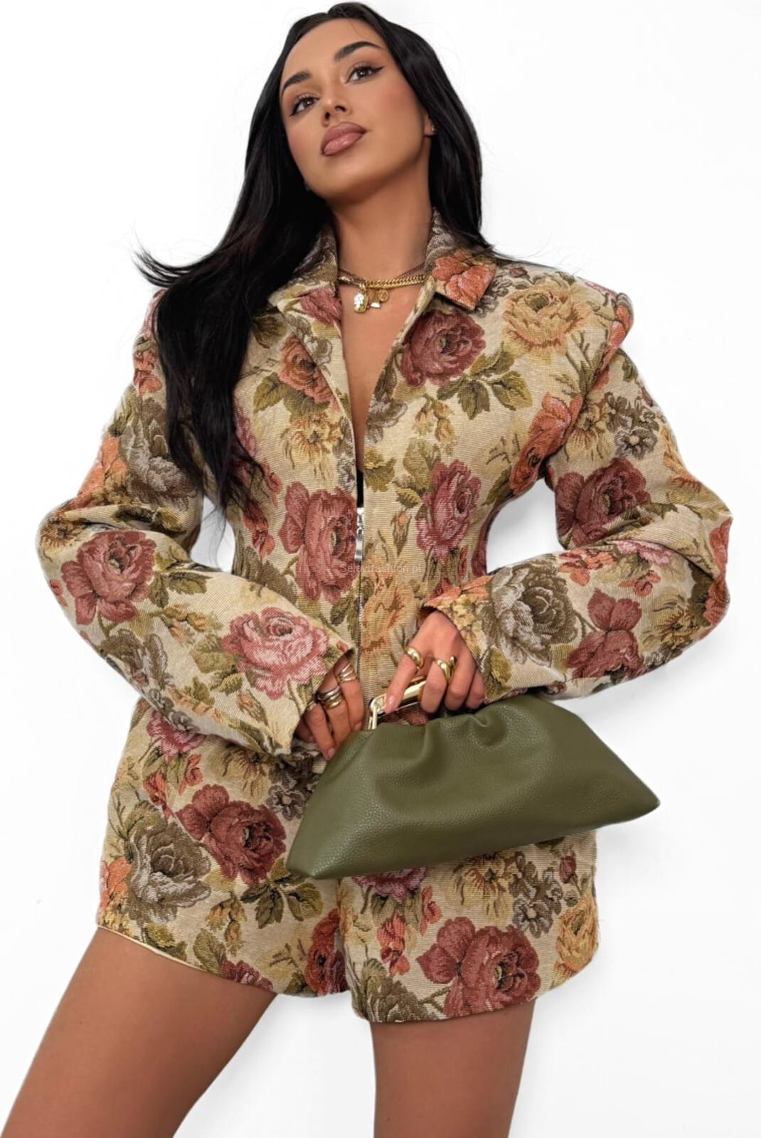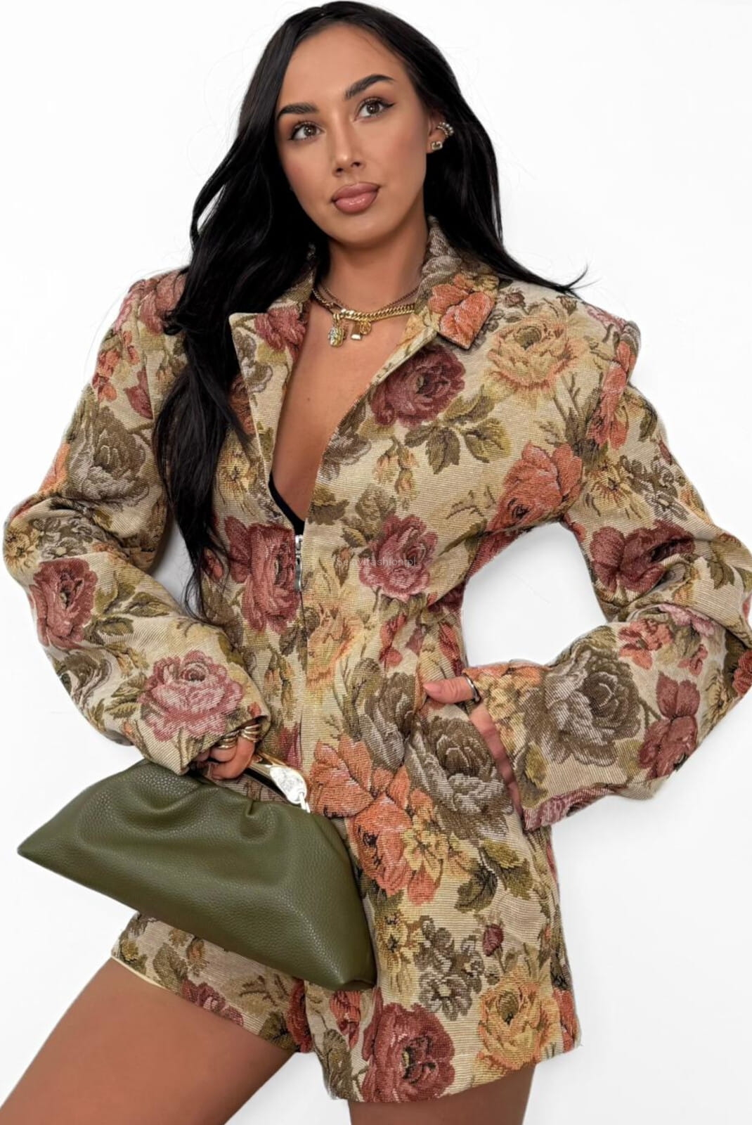 Damska marynarka od La Milla to elegancki i kobiecy element garderoby. Ten wyjątkowy fason wyróżnia się fasonem gorsetowym i zapięciem na zamek. Uszyte z materiału żakardowego w kolorowe kwiaty.