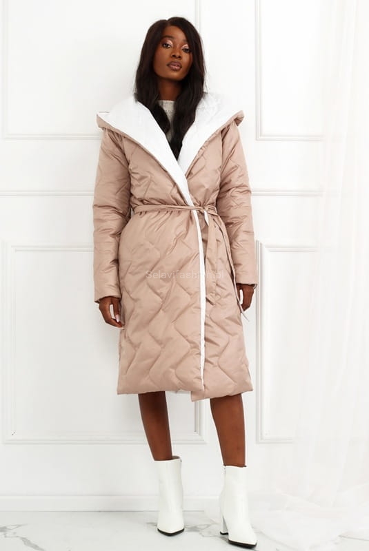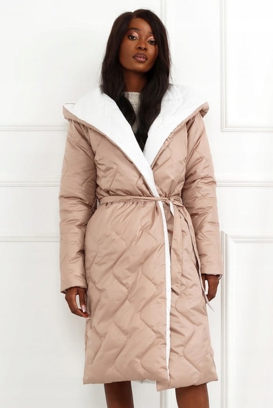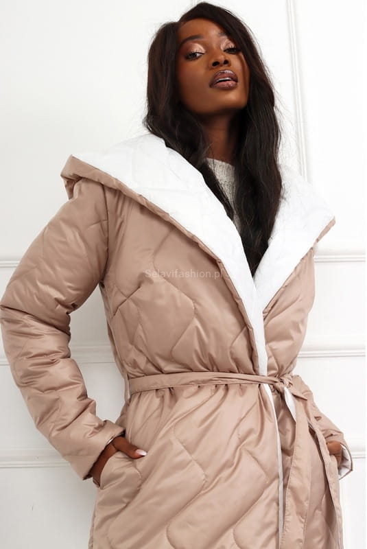 Kurtka płaszcz dwustronny wiązany LaDonna beżowo biały