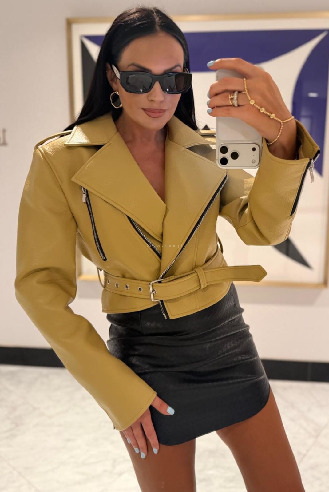 Kurtka ramoneska eko skóra La Milla żółta musztardowa