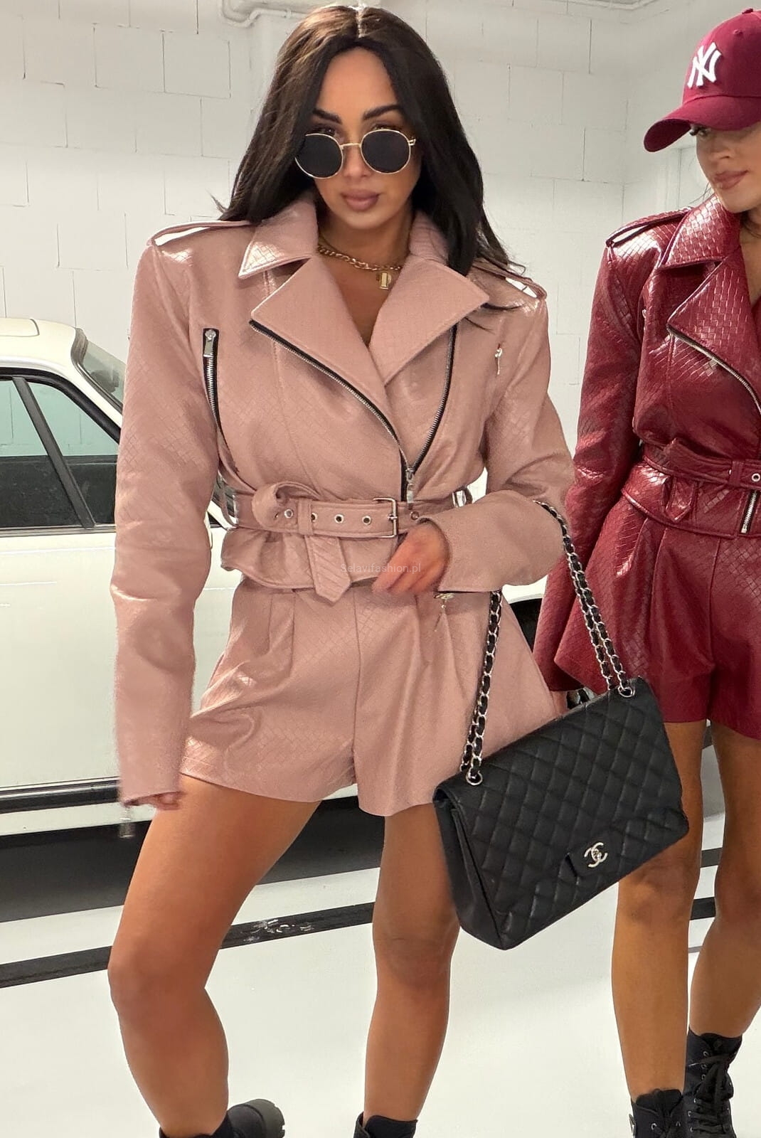 Kurtka ramoneska ekoskóra plecionka La Milla pudrowy róż