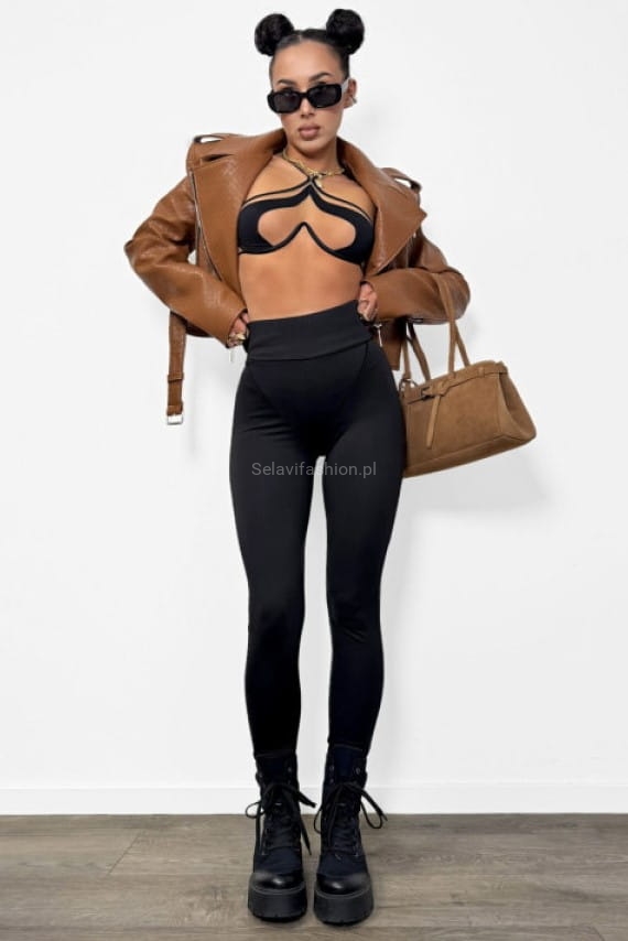 Legginsy firmy La Milla uszyte z elastycznego materiału. W pasie wszyta szeroka guma.