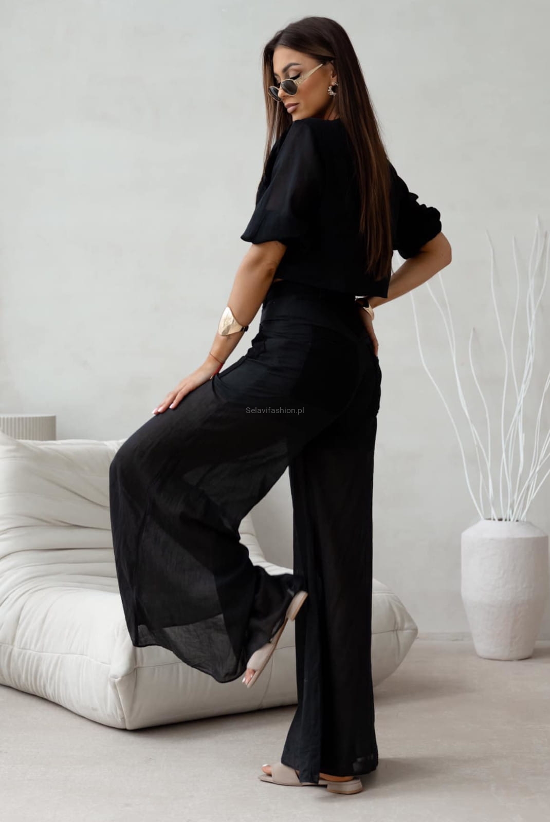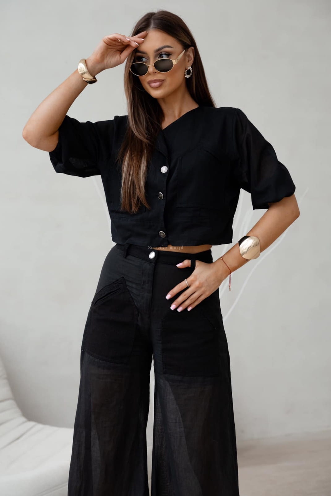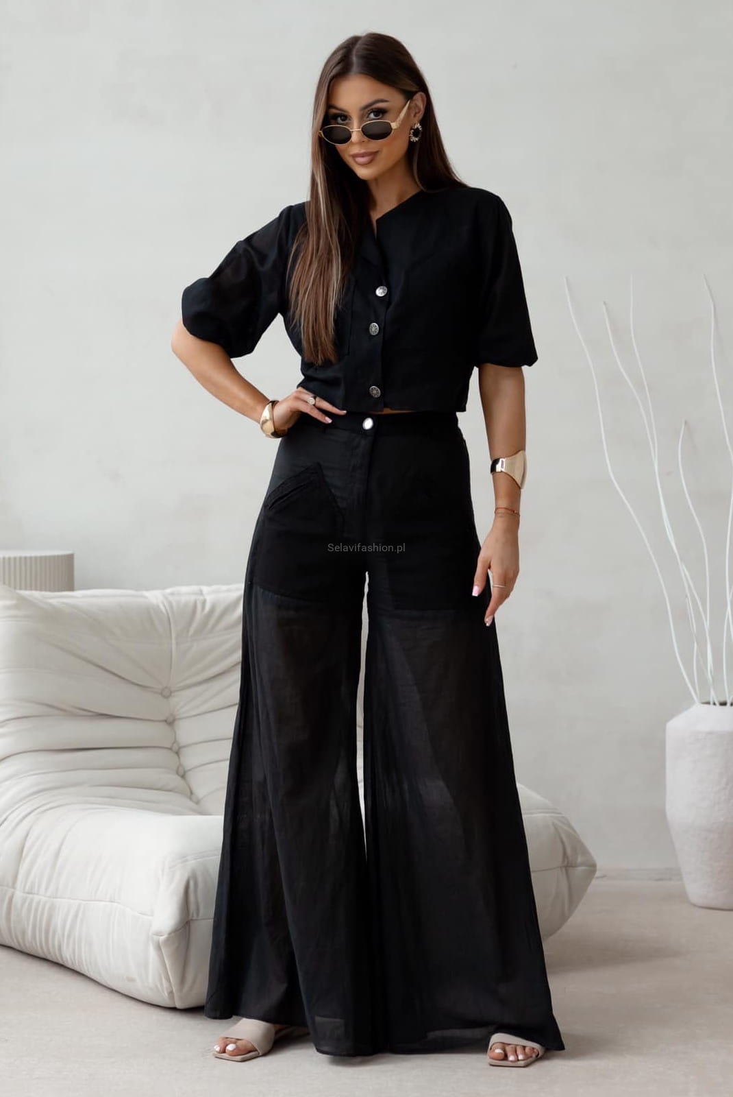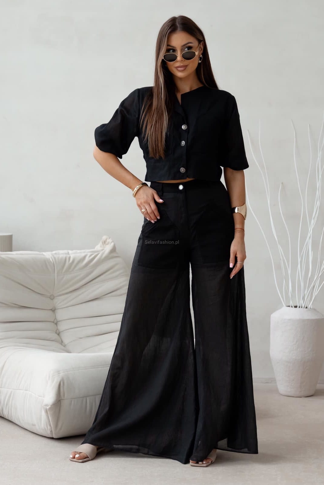 Letni komplet żakiet i spodnie VITELLO LaDivaMia czarny