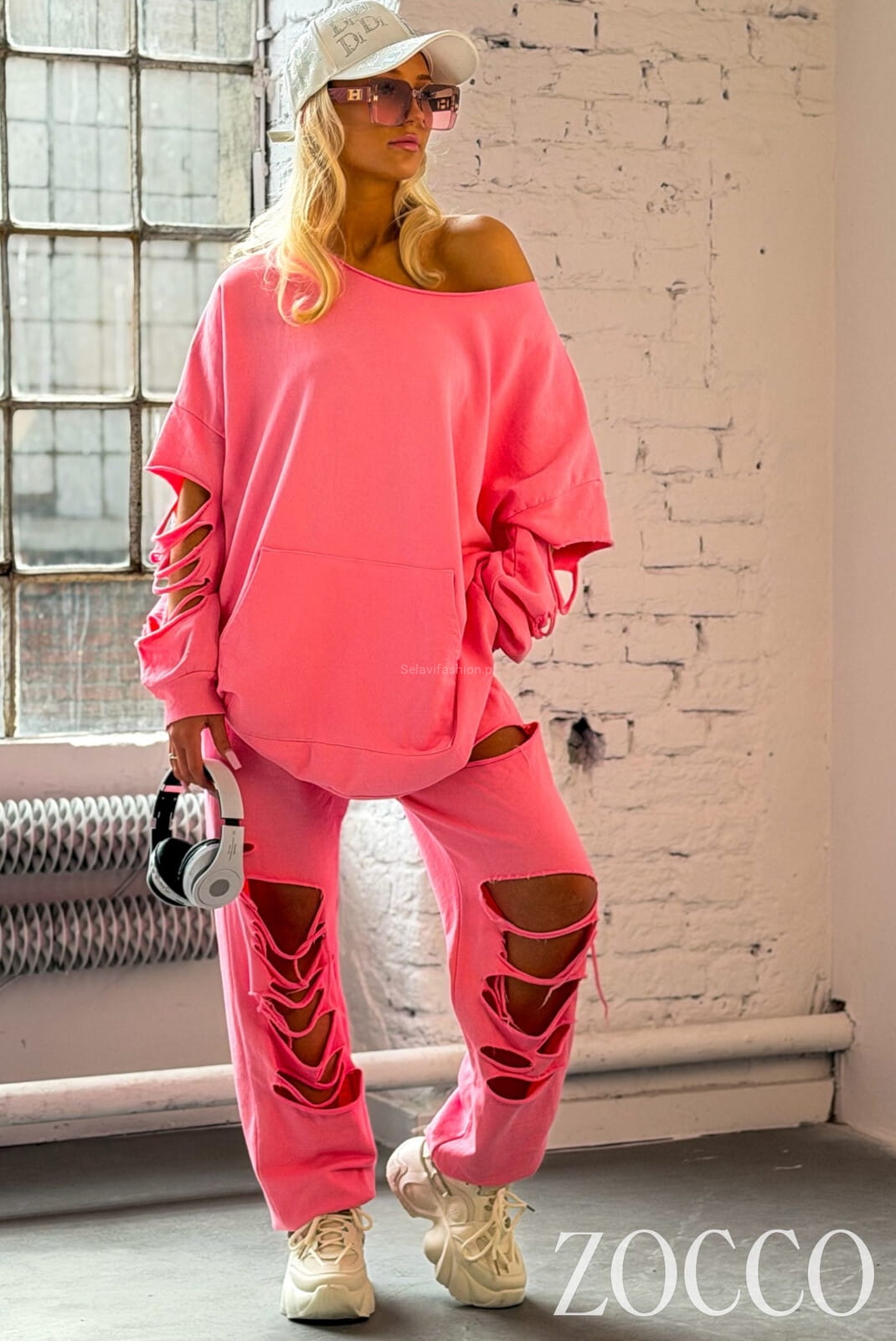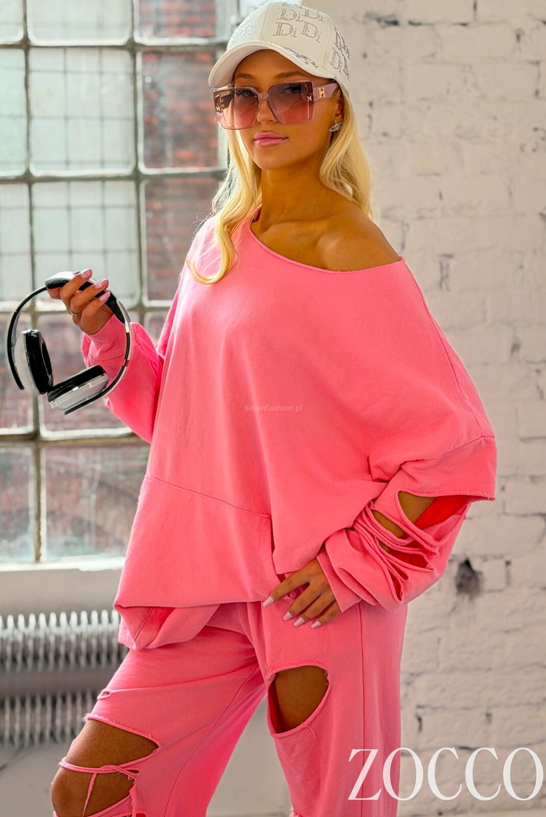 Luźny komplet bawełniany bluza i spodnie Zocco fuksja