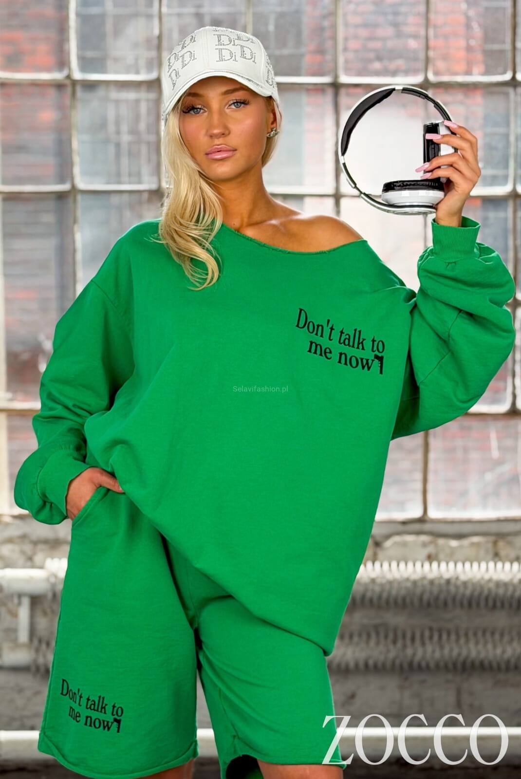 Komplet od firmy Zocco to idealne połączenie wygody i modnego designu, które doskonale sprawdzi się w codziennych stylizacjach. Zestaw składa się z komfortowej bluzy oraz krótkich spodenek, tworząc spójny i stylowy look na cieplejsze dni. Bluza wyróżnia się szerokim dekoltem, który subtelnie podkreśla kobiecą sylwetkę, oraz praktycznym ściągaczem na dole, zapewniającym idealne dopasowanie. Całość uzupełniają stylowe napisy, które nadają kompletowi nowoczesnego, miejskiego charakteru.