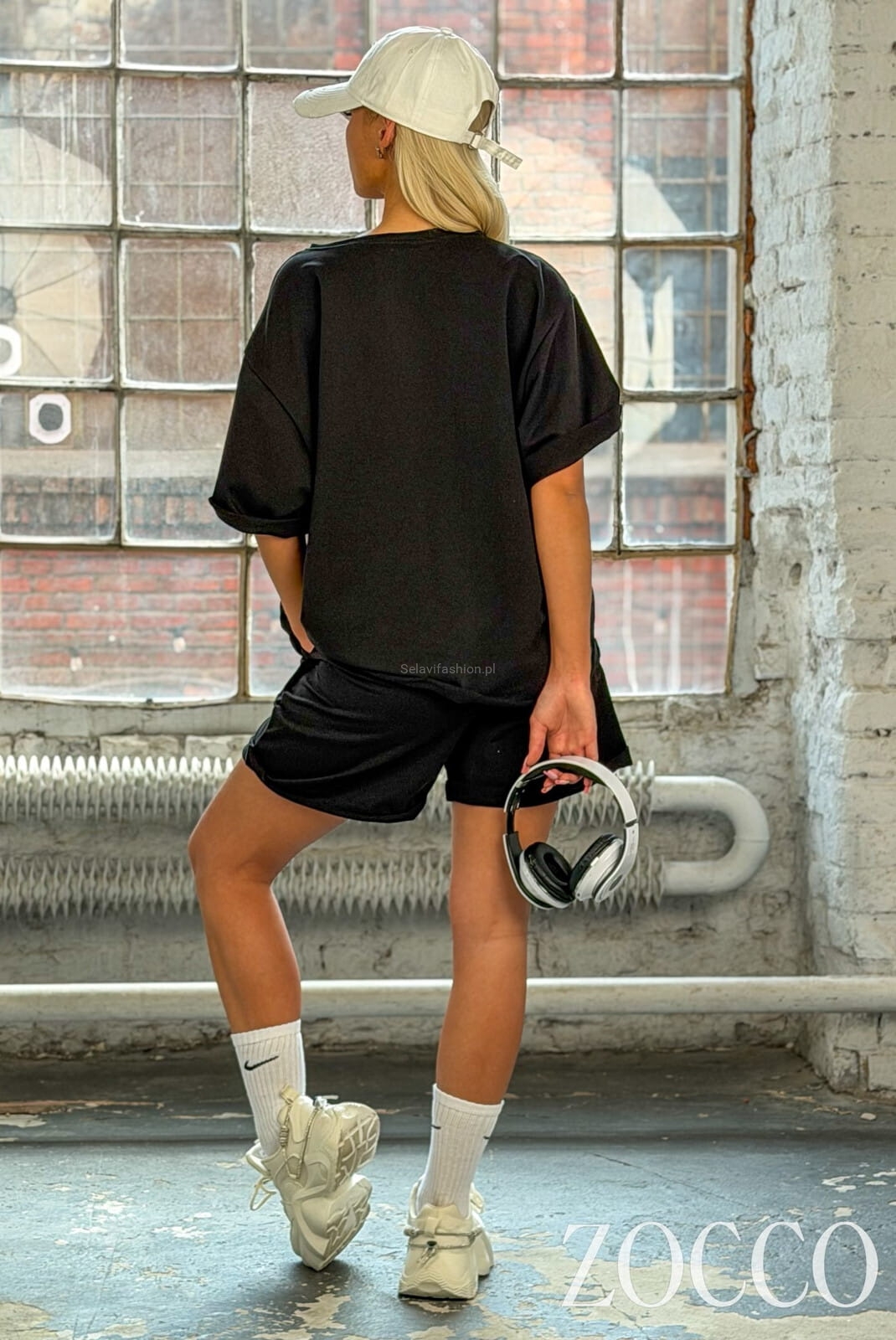 Luźny komplet bluzka i spodenki z aplikacjami Zocco czarny