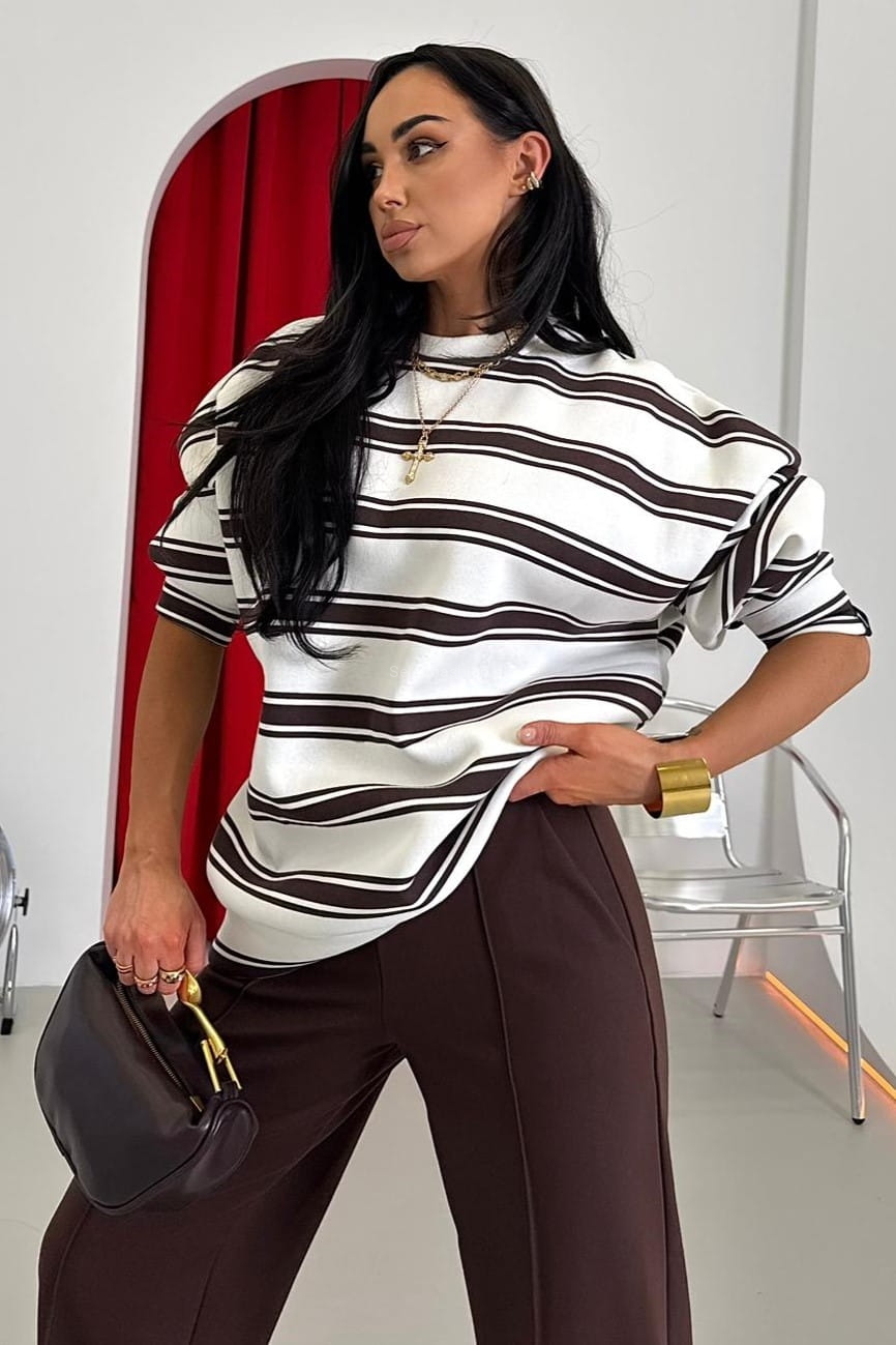 Bawełniana bluza w paski od La Milki. Uszyta z materiału bawełnianego o grubszej gramaturze.