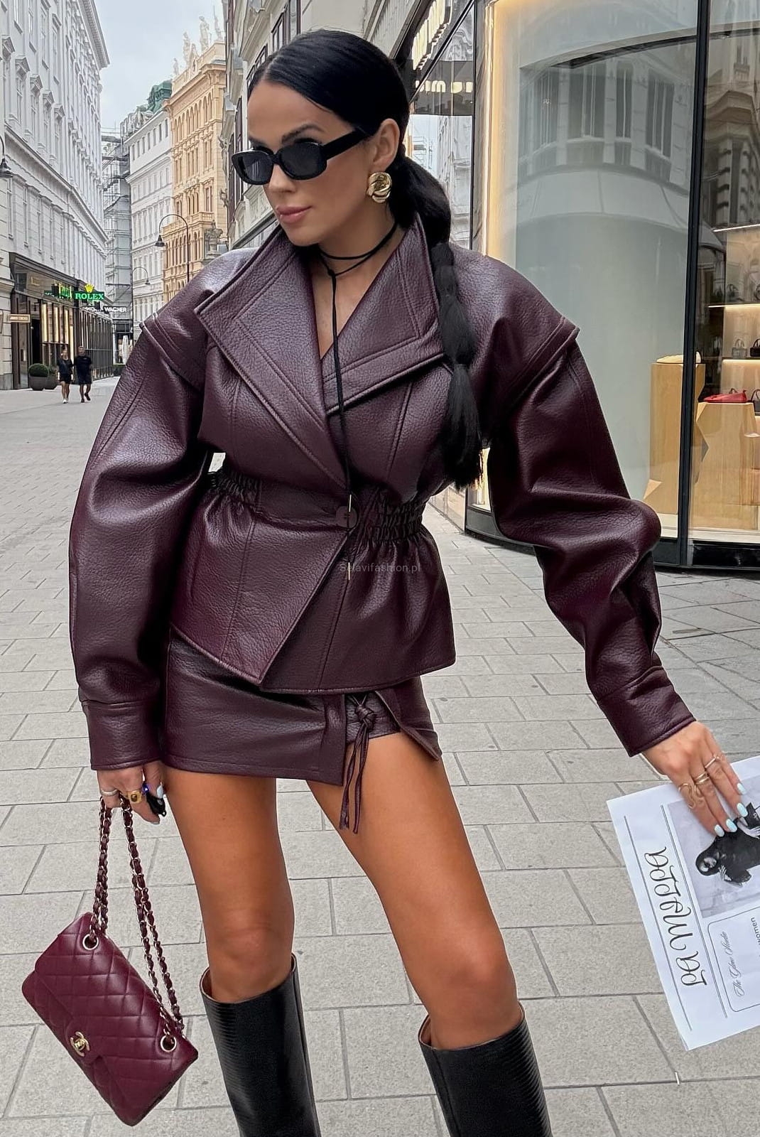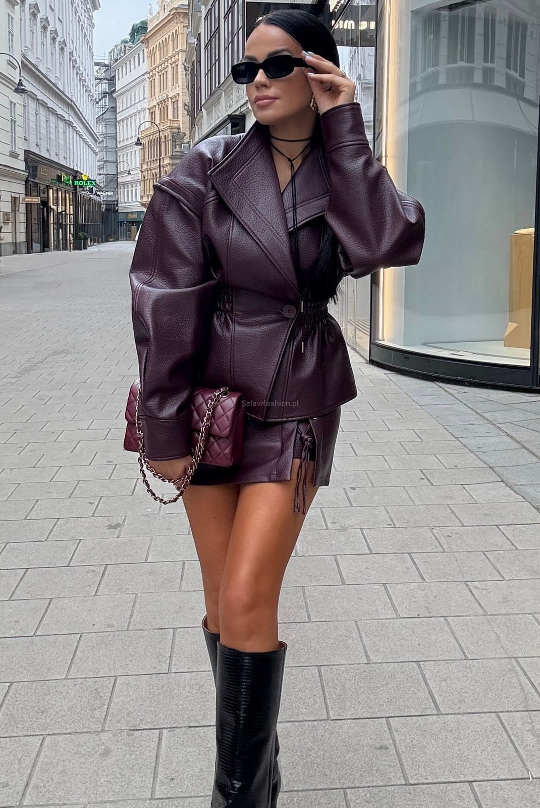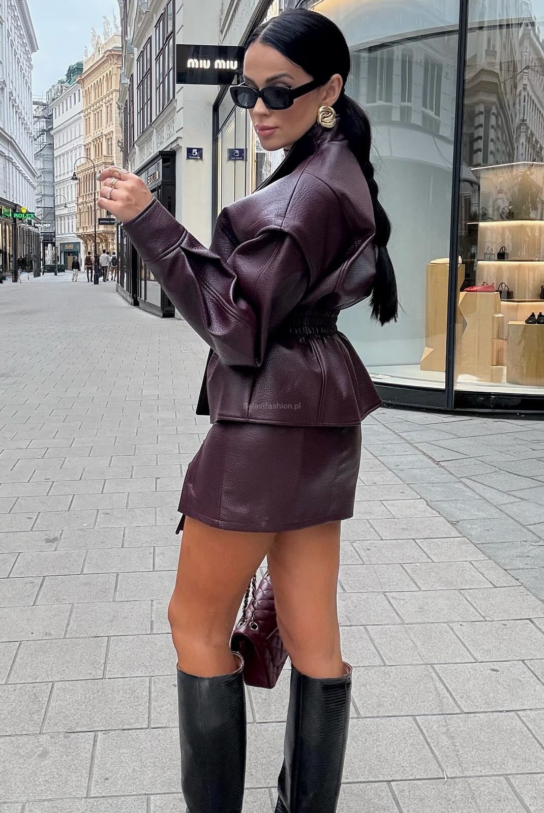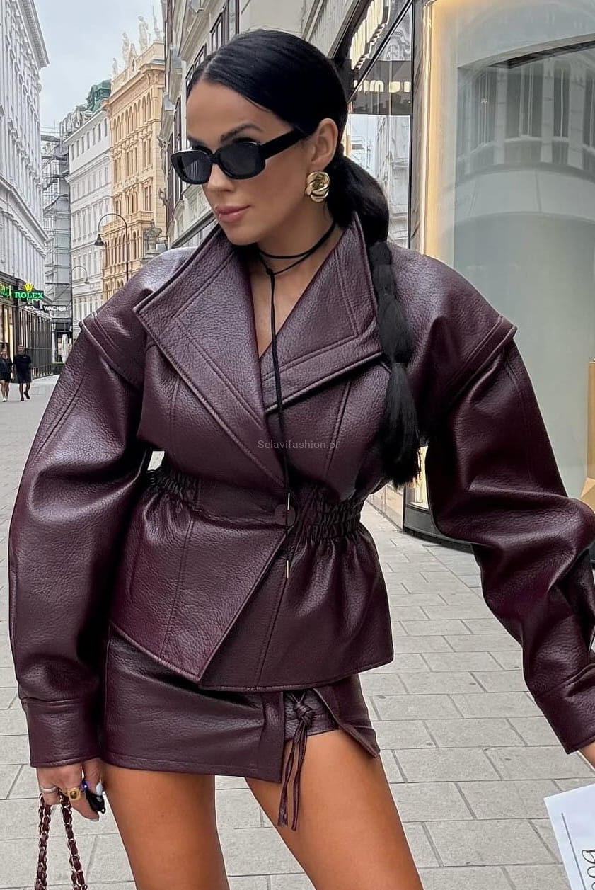 Spódniczka spódnica ze sznurowaniem z ekoskóry LaMilla bordowa
